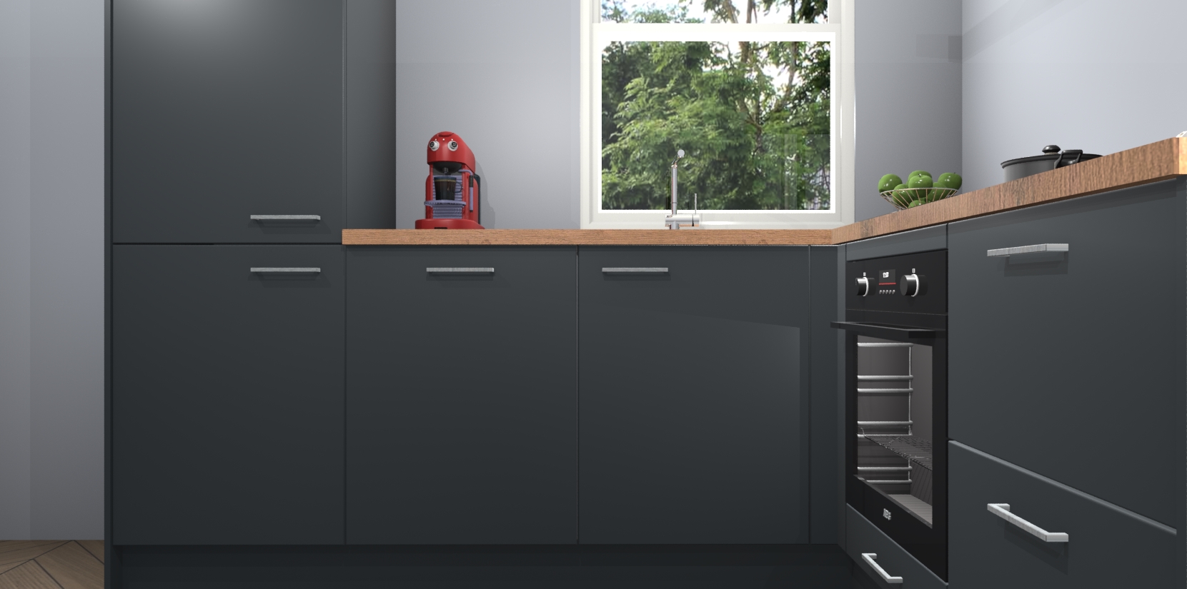 De Onyxgrijze keuken Phuket heeft alles wat u maar kunt wensen. Niet alleen zijn er softclose deuren, maar ook 5 ingebouwde apparaten: een oven, inductiekookplaat, afzuigkap, vaatwasser en koelkast - waarbij u later gemakkelijk naar het AEG merk, van inductiekookplaat naar kookplaat met geïntegreerde afzuiging of van oven naar combimagnetron kunt upgraden. Dat alles tegen een vast laag tarief! Bovendien geeft de Onyxgrijze keuken Phuket supersnelle levering van 7 weken. Echt iets voor u als u er niet op wilt wachten om het resultaat te zien in eigen keuken!