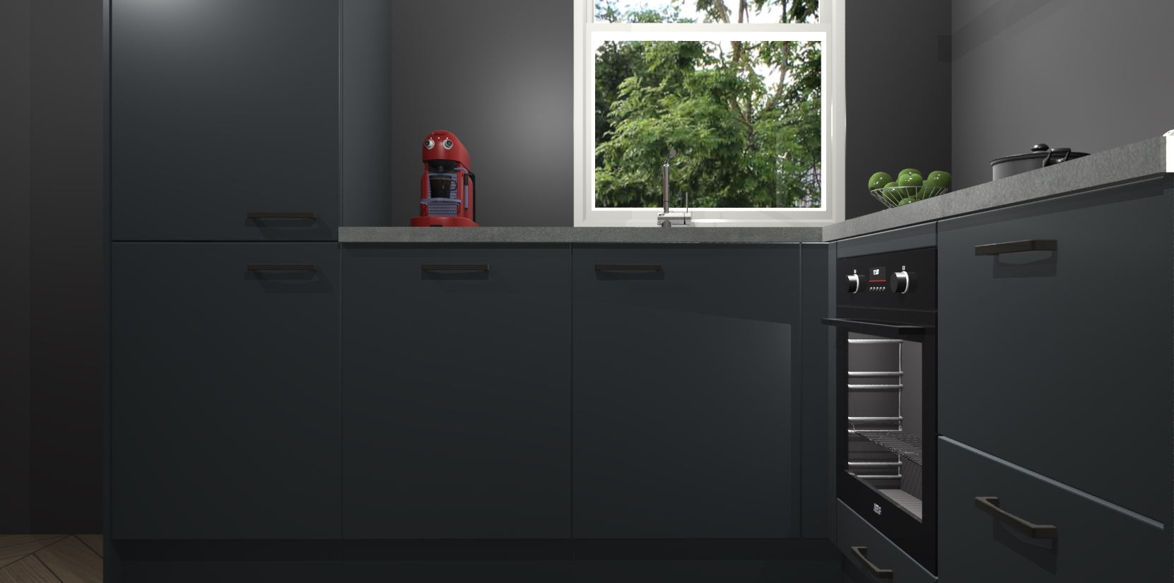 De Onyxgrijze keuken Phuket heeft alles wat u maar kunt wensen. Niet alleen zijn er softclose deuren, maar ook 5 ingebouwde apparaten: een oven, inductiekookplaat, afzuigkap, vaatwasser en koelkast - waarbij u later gemakkelijk naar het AEG merk, van inductiekookplaat naar kookplaat met geïntegreerde afzuiging of van oven naar combimagnetron kunt upgraden. Dat alles tegen een vast laag tarief! Bovendien geeft de Onyxgrijze keuken Phuket supersnelle levering van 7 weken. Echt iets voor u als u er niet op wilt wachten om het resultaat te zien in eigen keuken!