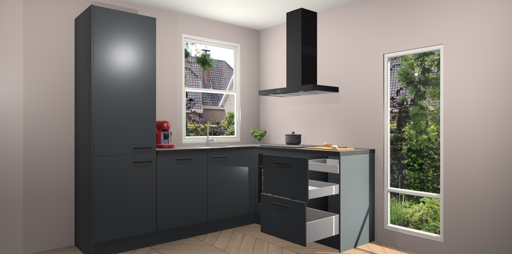 De prachtige Onyxgrijze keuken Phuket is de perfecte keuze als u op zoek bent naar een moderne hoekkeuken met alle luxe en comfort die u kunt verwachten! De uitstraling in het houtlook-design draagt bij aan de warme sfeer die u nu al voelt wanneer u er naar kijkt. Heeft u genoeg van ouderwetse keukens? Probeer dan direct deze moderne, mooie hoekkeukens en laat iedereen verbluft achter!
