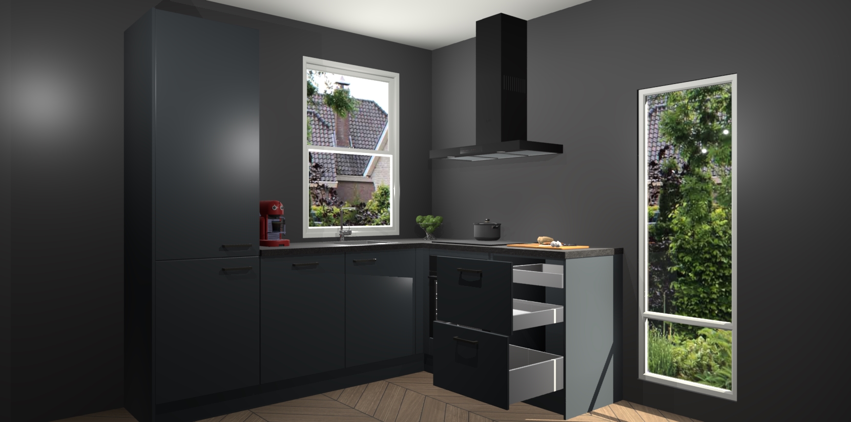 De prachtige Onyxgrijze keuken Phuket is de perfecte keuze als u op zoek bent naar een moderne hoekkeuken met alle luxe en comfort die u kunt verwachten! De uitstraling in het houtlook-design draagt bij aan de warme sfeer die u nu al voelt wanneer u er naar kijkt. Heeft u genoeg van ouderwetse keukens? Probeer dan direct deze moderne, mooie hoekkeukens en laat iedereen verbluft achter!