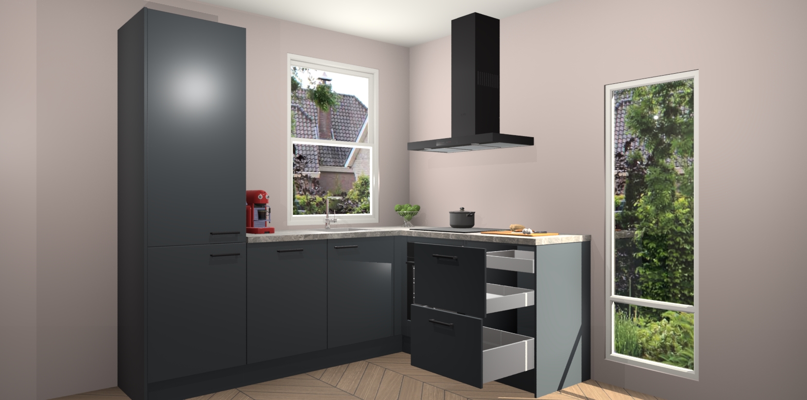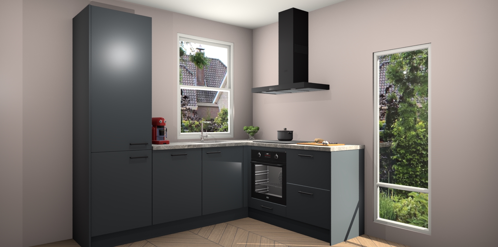 De prachtige Onyxgrijze keuken Phuket is de perfecte keuze als u op zoek bent naar een moderne hoekkeuken met alle luxe en comfort die u kunt verwachten! De uitstraling in het houtlook-design draagt bij aan de warme sfeer die u nu al voelt wanneer u er naar kijkt. Heeft u genoeg van ouderwetse keukens? Probeer dan direct deze moderne, mooie hoekkeukens en laat iedereen verbluft achter!