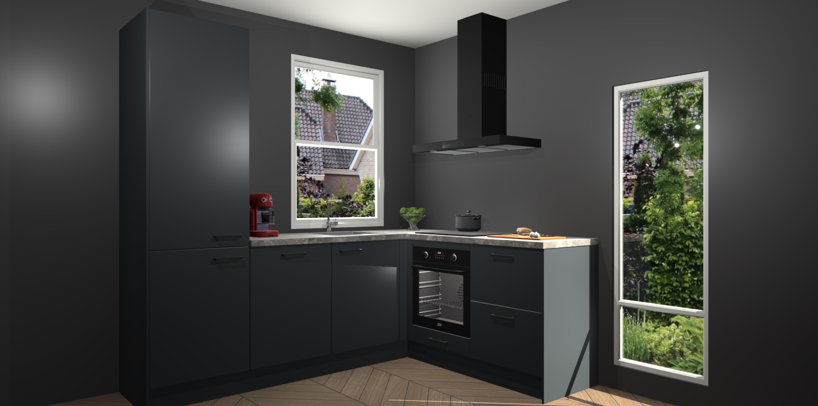De prachtige Onyxgrijze keuken Phuket is de perfecte keuze als u op zoek bent naar een moderne hoekkeuken met alle luxe en comfort die u kunt verwachten! De uitstraling in het houtlook-design draagt bij aan de warme sfeer die u nu al voelt wanneer u er naar kijkt. Heeft u genoeg van ouderwetse keukens? Probeer dan direct deze moderne, mooie hoekkeukens en laat iedereen verbluft achter!