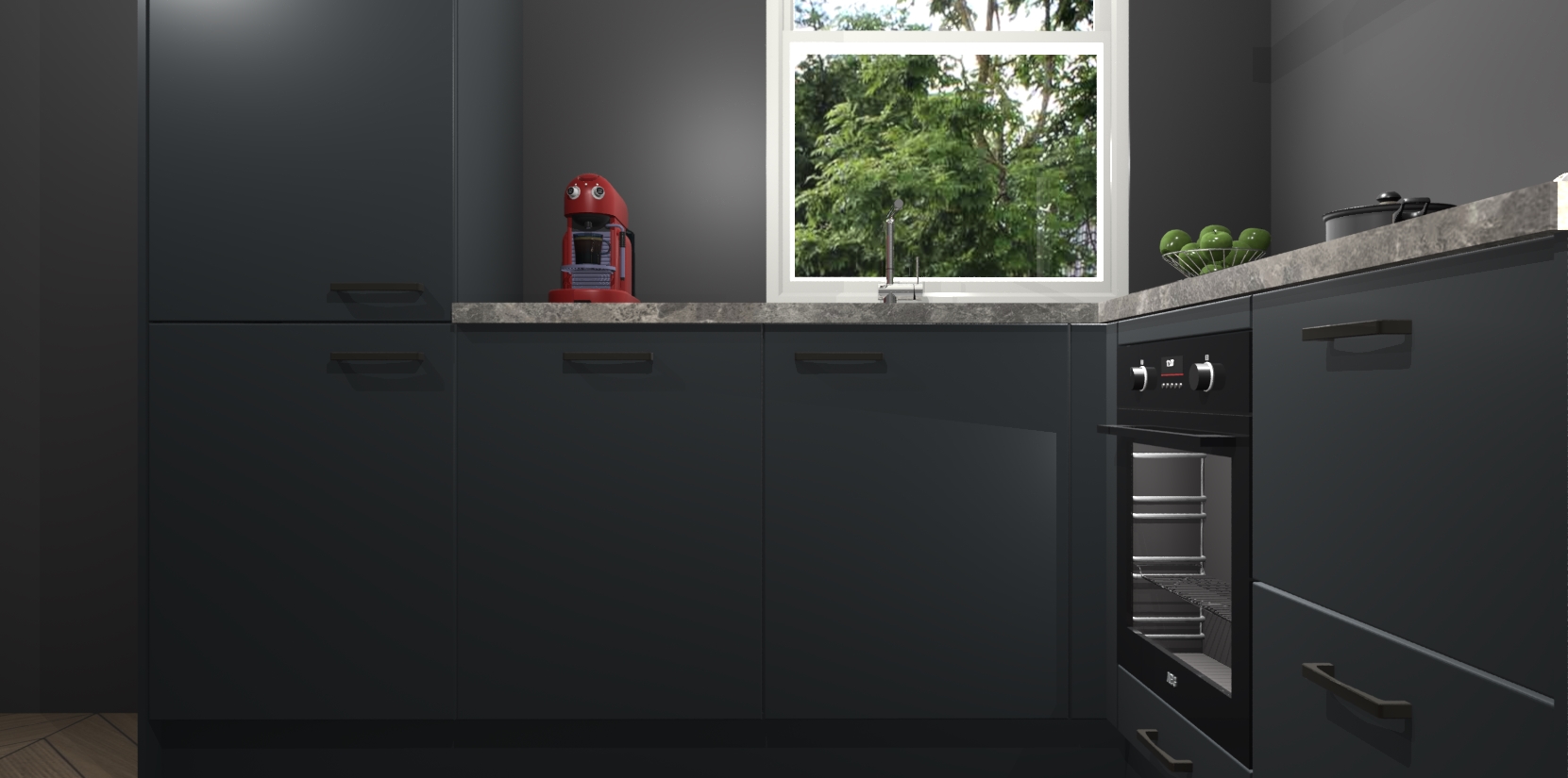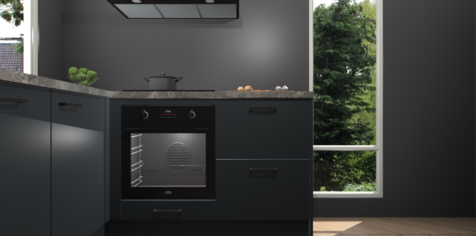 De Onyxgrijze keuken Phuket heeft alles wat u maar kunt wensen. Niet alleen zijn er softclose deuren, maar ook 5 ingebouwde apparaten: een oven, inductiekookplaat, afzuigkap, vaatwasser en koelkast - waarbij u later gemakkelijk naar het AEG merk, van inductiekookplaat naar kookplaat met geïntegreerde afzuiging of van oven naar combimagnetron kunt upgraden. Dat alles tegen een vast laag tarief! Bovendien geeft de Onyxgrijze keuken Phuket supersnelle levering van 7 weken. Echt iets voor u als u er niet op wilt wachten om het resultaat te zien in eigen keuken!