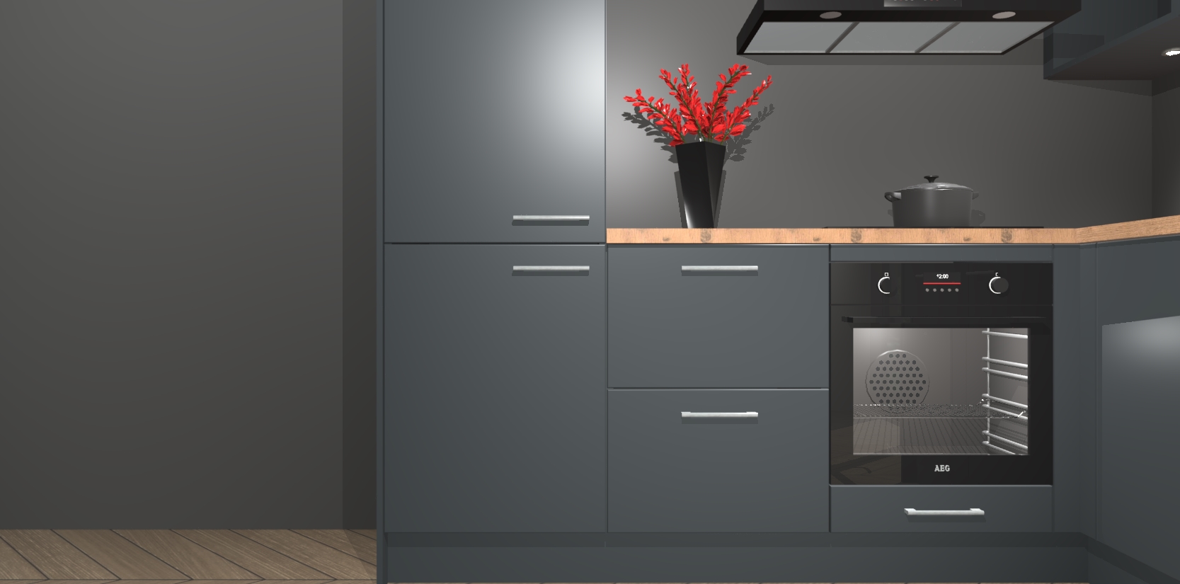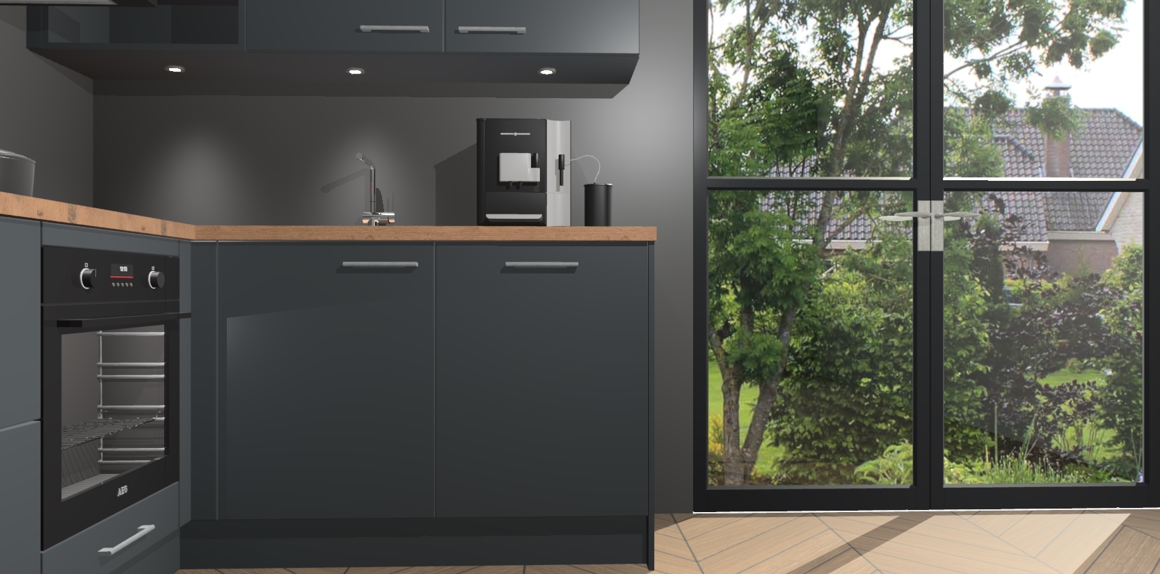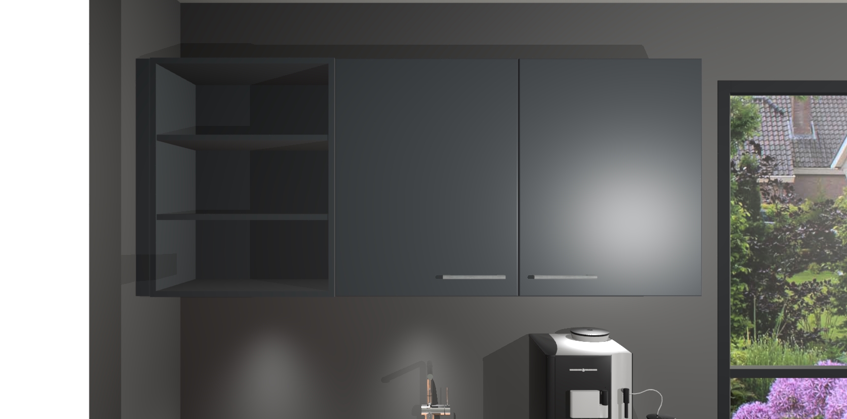 Wauw, dit is de onyxgrijze keuken Pilsen! U kunt gerust zeggen dat u elegantie combineert met functionaliteit met deze keuken. Met een modern en chique ontwerp is de keuken precies wat u nodig heeft om uw ruimte te verfraaien. De binnenzijde van de kasten is in dezelfde donkere kleur als de buitenzijde voor een uniforme look, compleet met softclose-kasten die stil sluiten.
