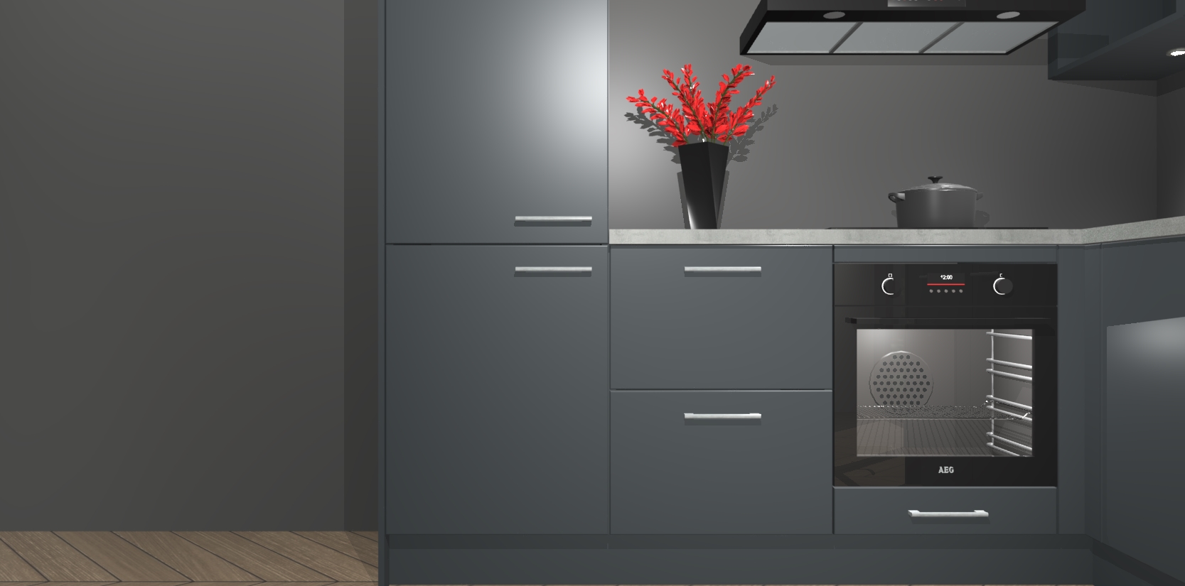 Wauw, dit is de onyxgrijze keuken Pilsen! U kunt gerust zeggen dat u elegantie combineert met functionaliteit met deze keuken. Met een modern en chique ontwerp is de keuken precies wat u nodig heeft om uw ruimte te verfraaien. De binnenzijde van de kasten is in dezelfde donkere kleur als de buitenzijde voor een uniforme look, compleet met softclose-kasten die stil sluiten.