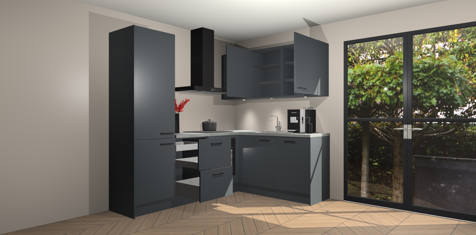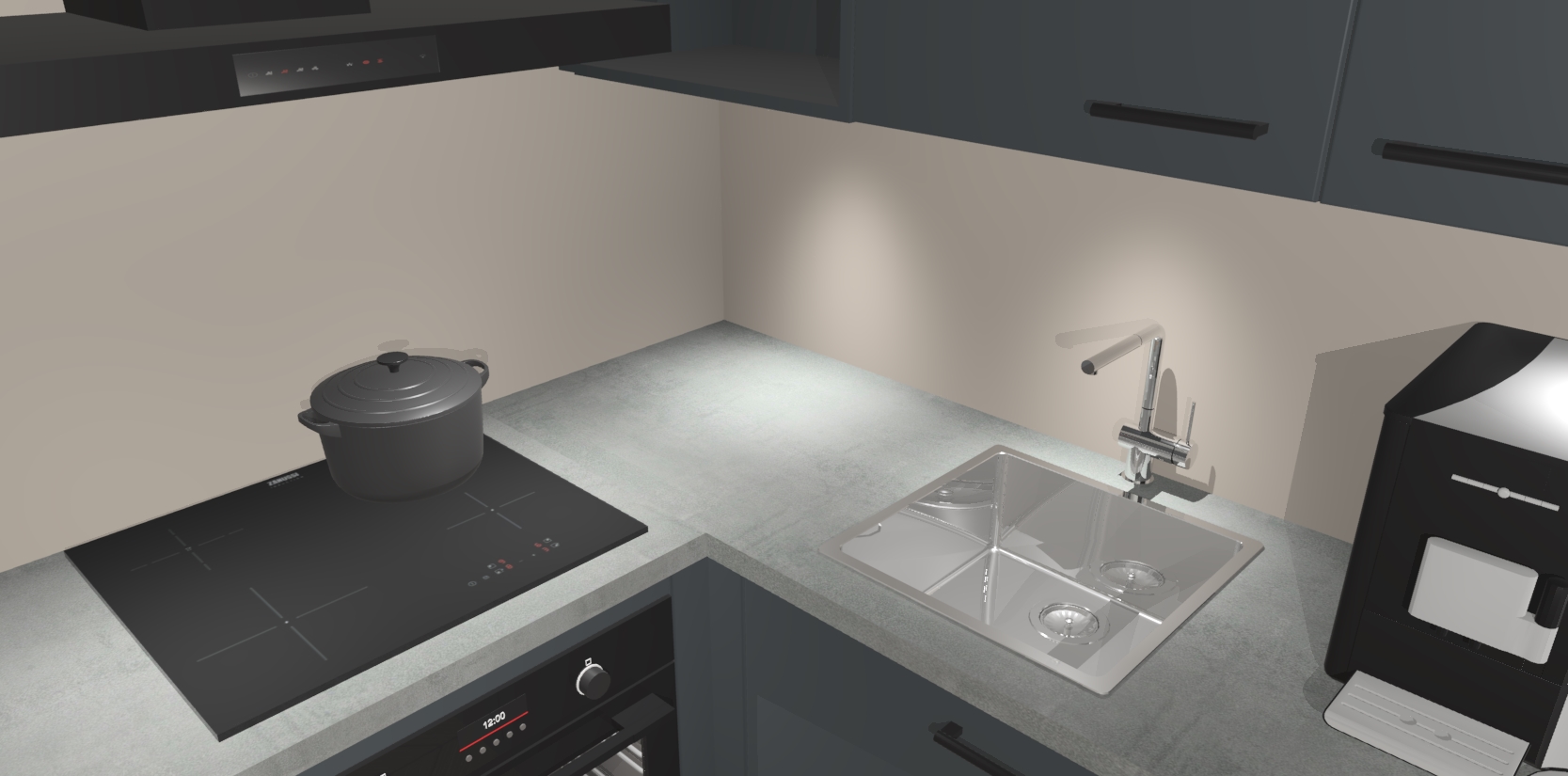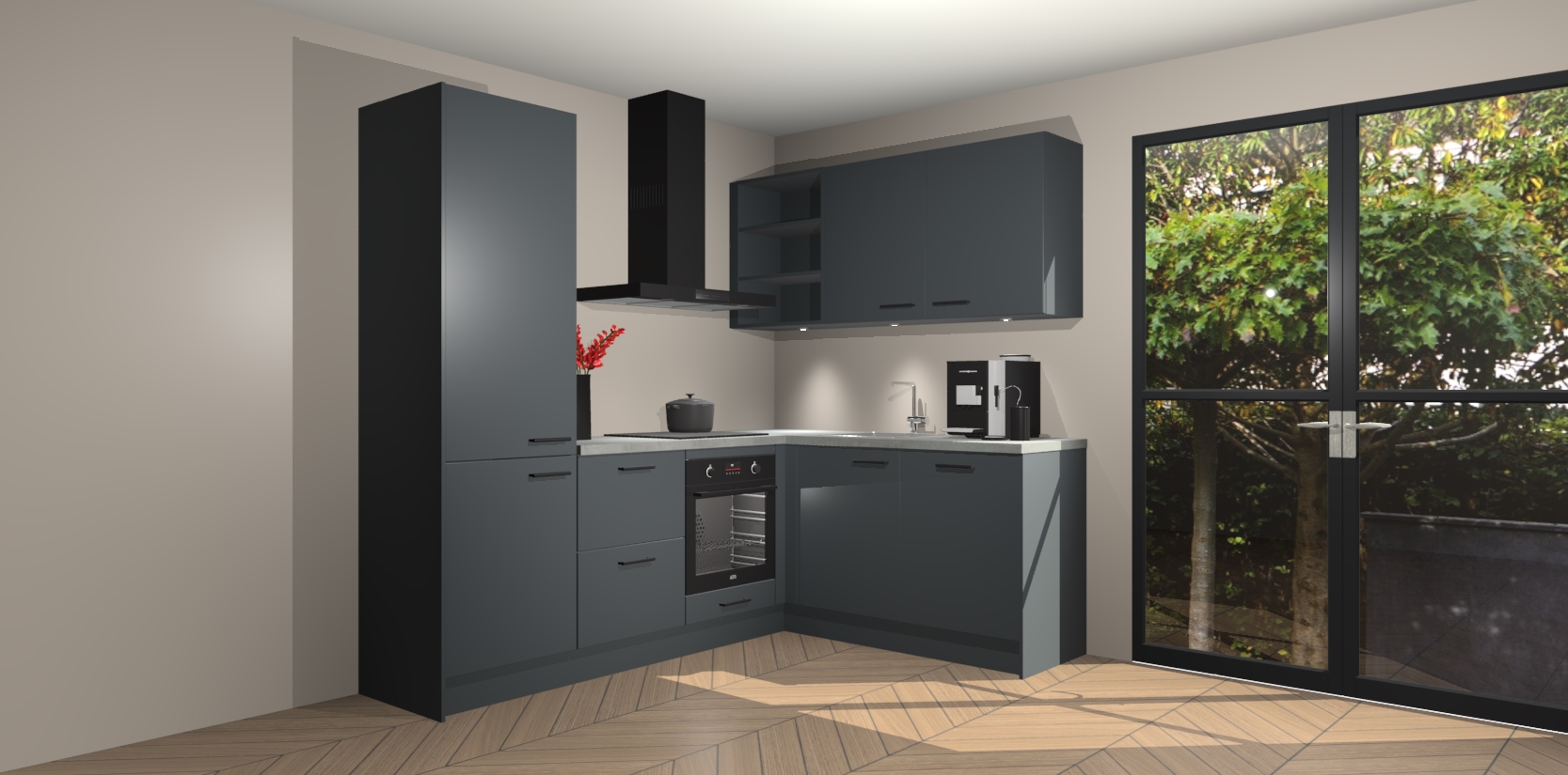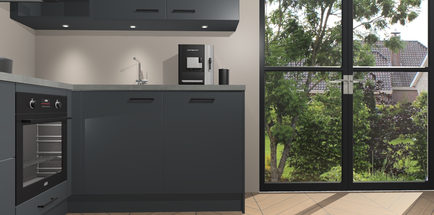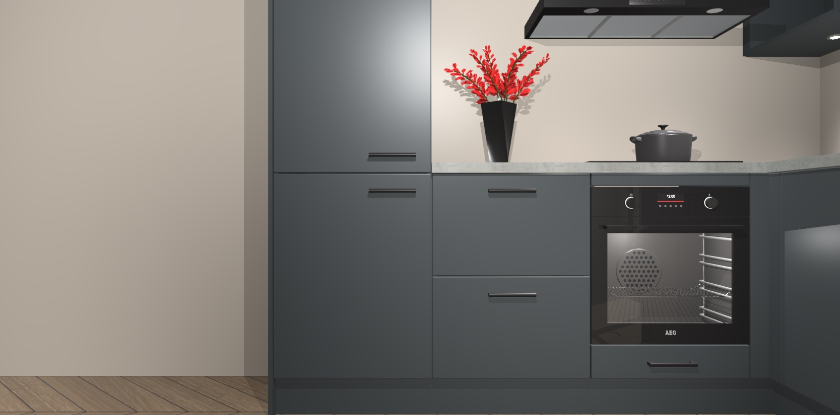 Wauw, dit is de onyxgrijze keuken Pilsen! U kunt gerust zeggen dat u elegantie combineert met functionaliteit met deze keuken. Met een modern en chique ontwerp is de keuken precies wat u nodig heeft om uw ruimte te verfraaien. De binnenzijde van de kasten is in dezelfde donkere kleur als de buitenzijde voor een uniforme look, compleet met softclose-kasten die stil sluiten.