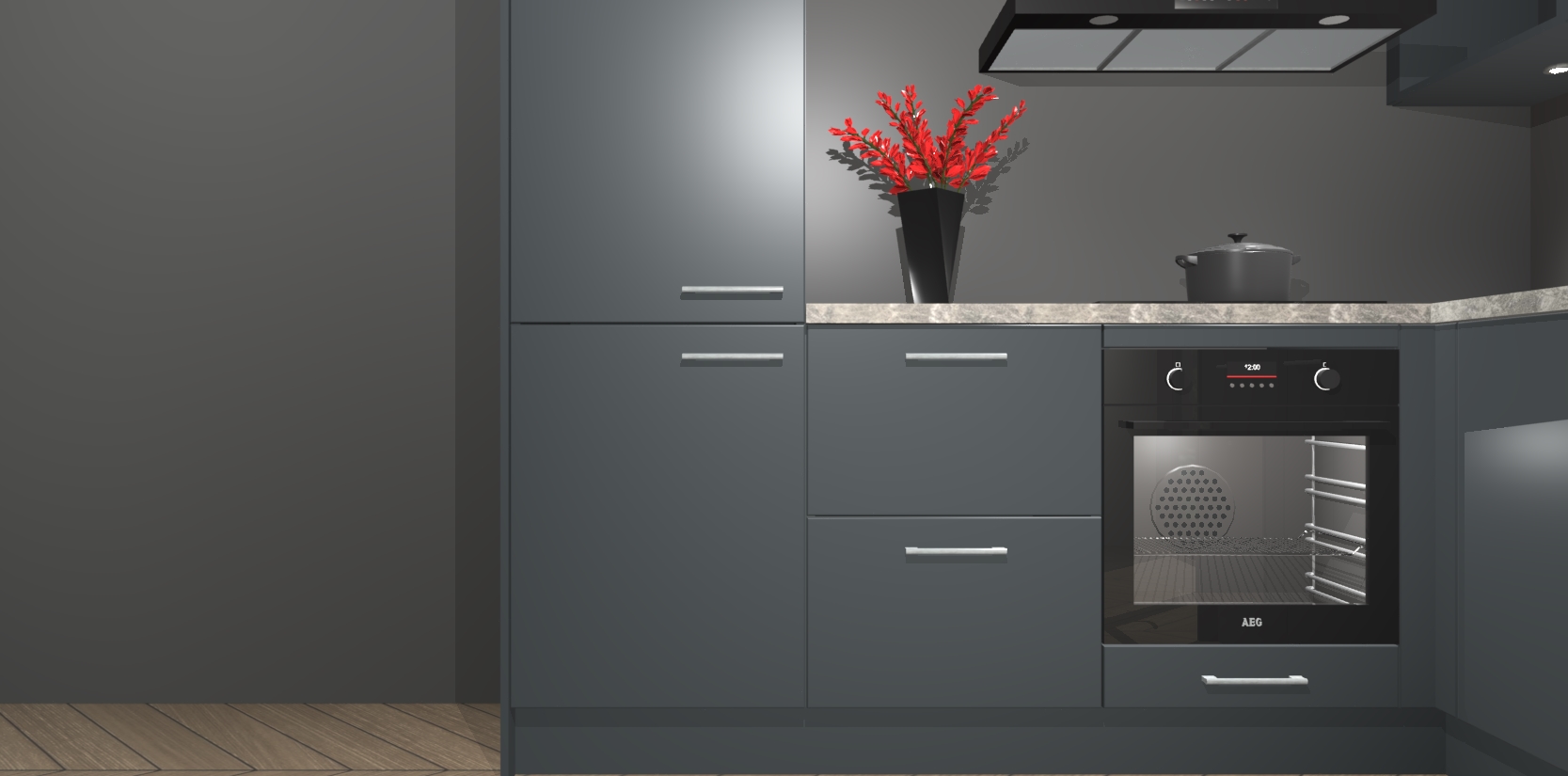 Wauw, dit is de onyxgrijze keuken Pilsen! U kunt gerust zeggen dat u elegantie combineert met functionaliteit met deze keuken. Met een modern en chique ontwerp is de keuken precies wat u nodig heeft om uw ruimte te verfraaien. De binnenzijde van de kasten is in dezelfde donkere kleur als de buitenzijde voor een uniforme look, compleet met softclose-kasten die stil sluiten.
