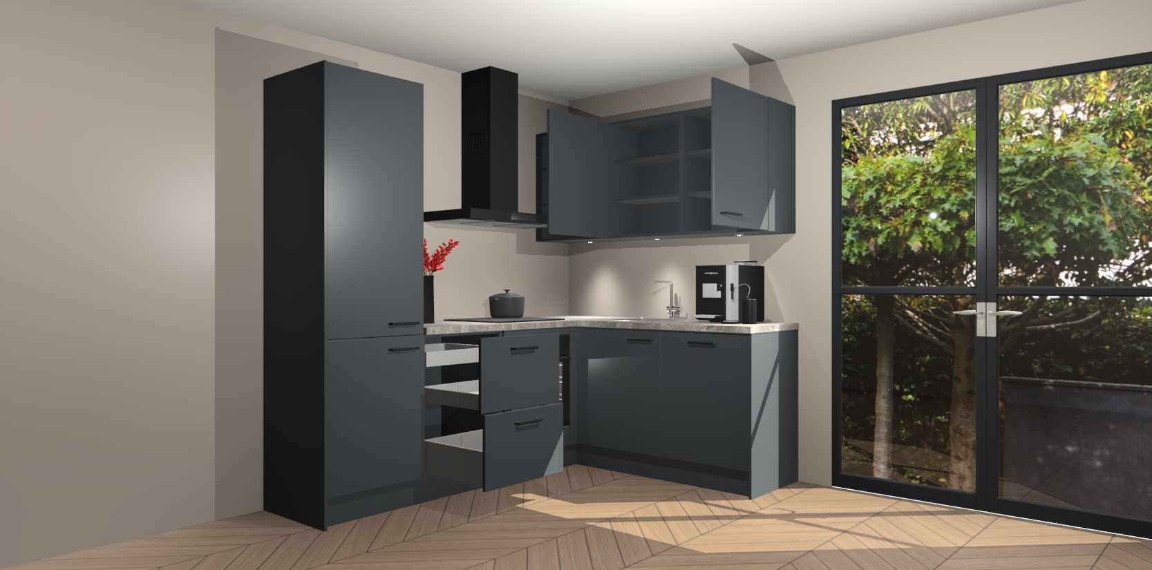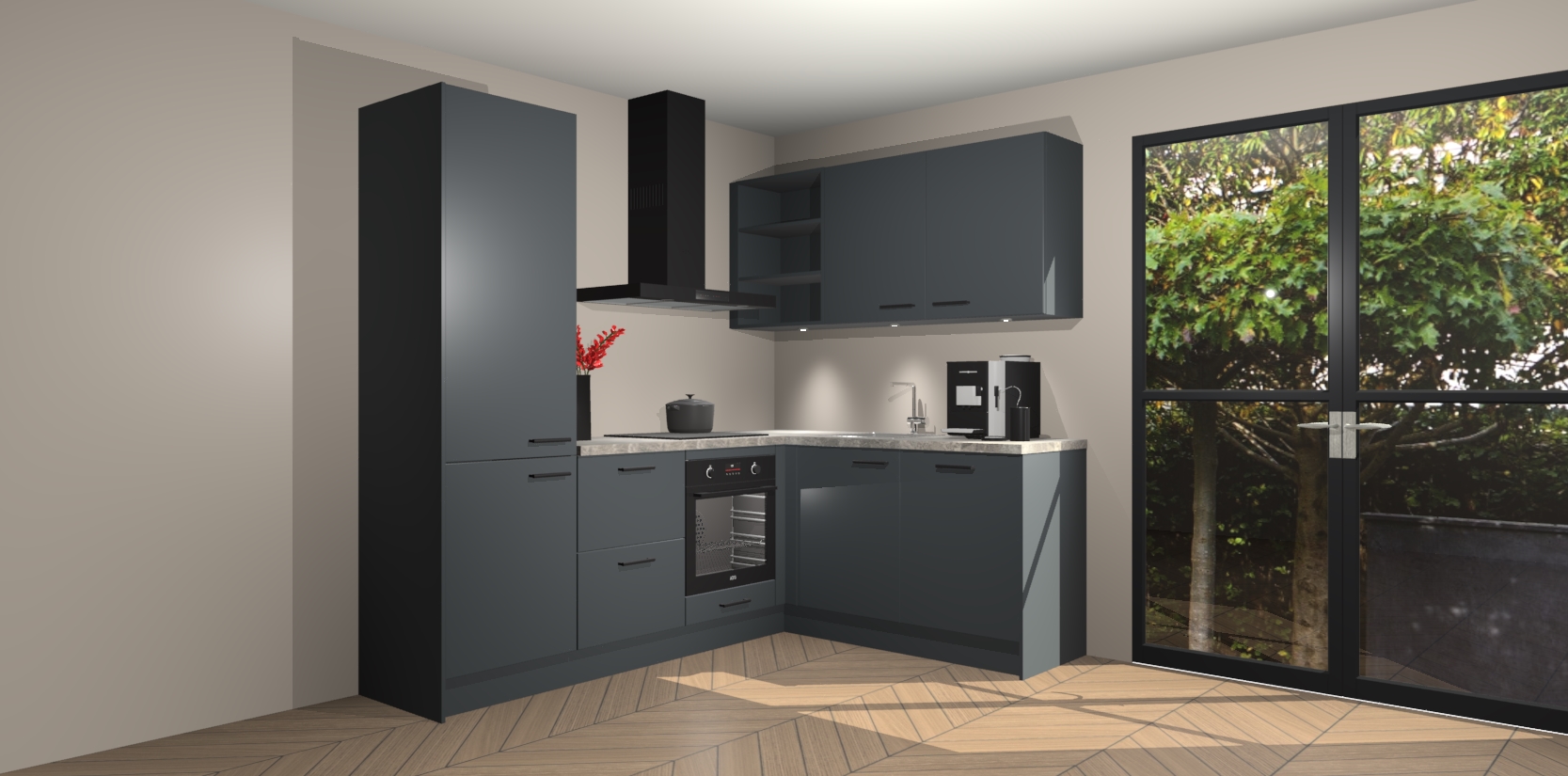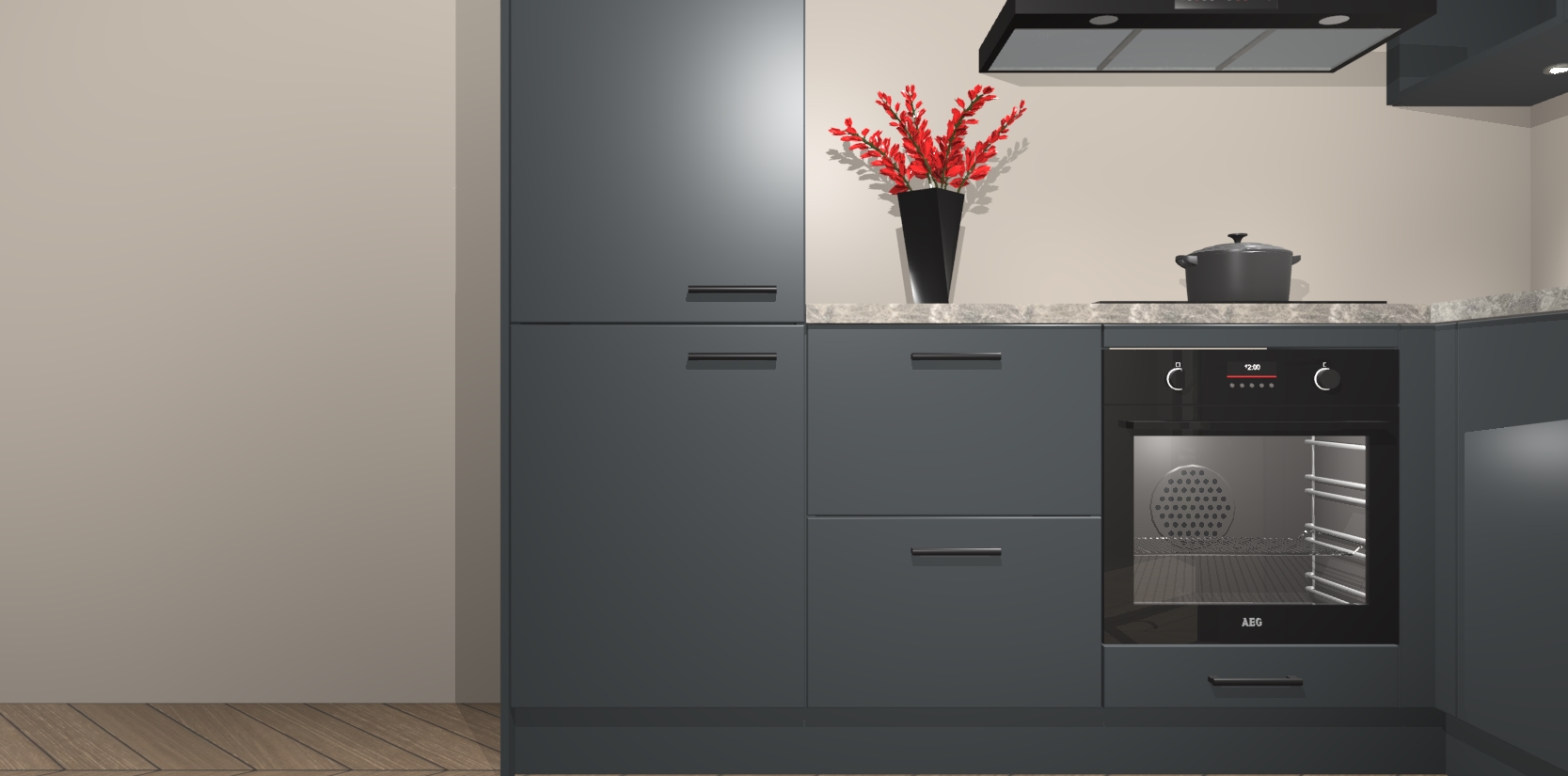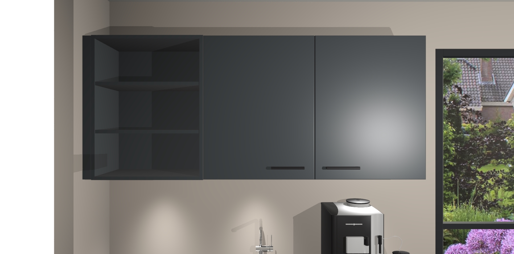 Wauw, dit is de onyxgrijze keuken Pilsen! U kunt gerust zeggen dat u elegantie combineert met functionaliteit met deze keuken. Met een modern en chique ontwerp is de keuken precies wat u nodig heeft om uw ruimte te verfraaien. De binnenzijde van de kasten is in dezelfde donkere kleur als de buitenzijde voor een uniforme look, compleet met softclose-kasten die stil sluiten.