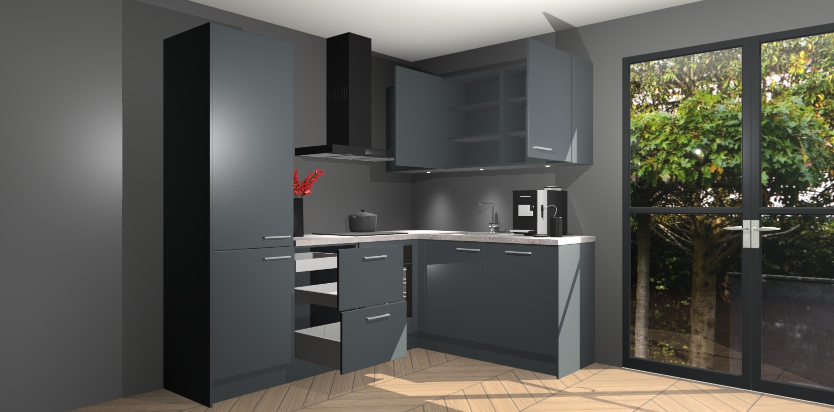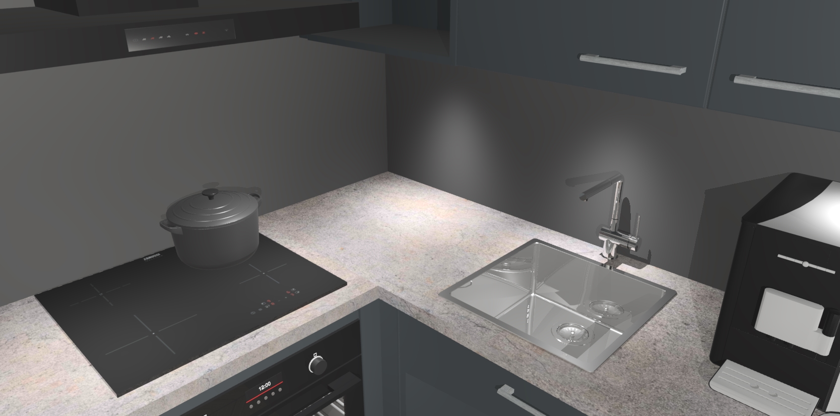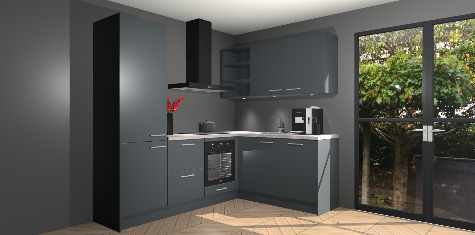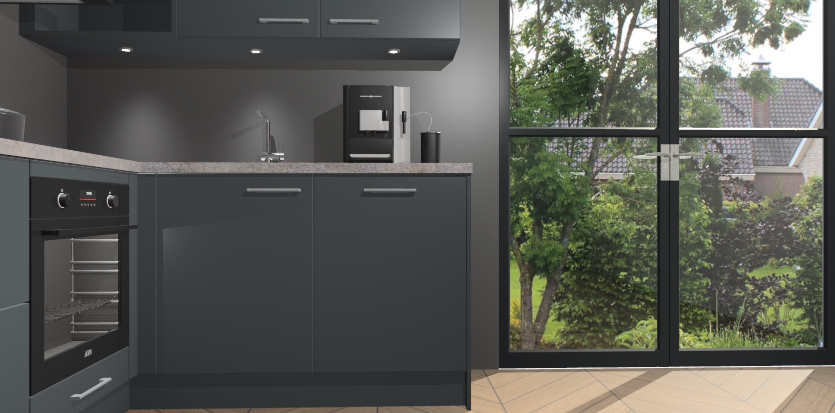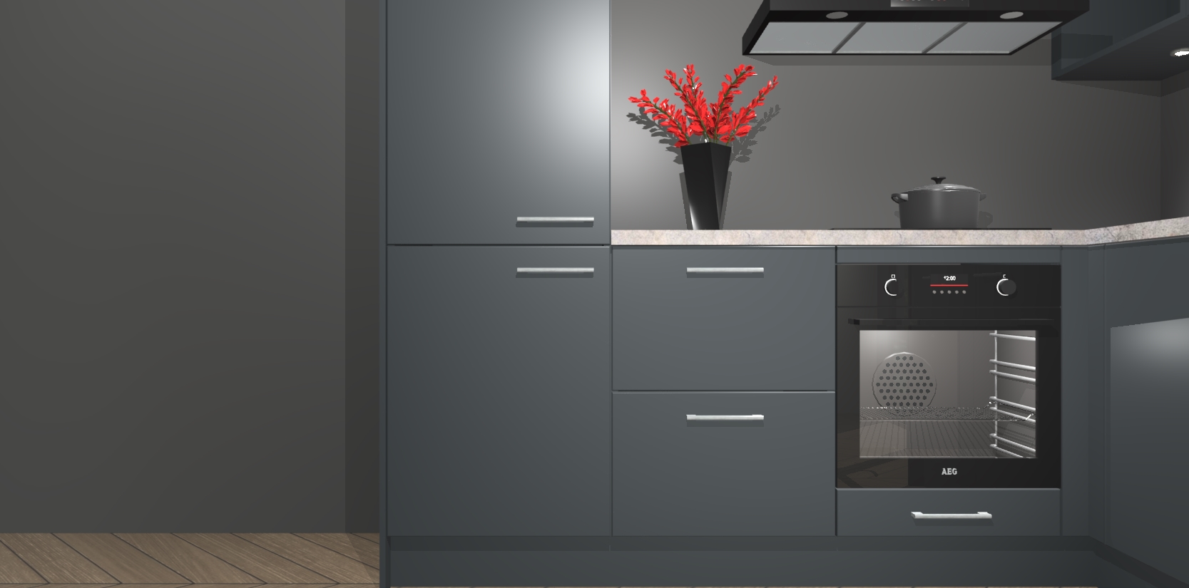 Wauw, dit is de onyxgrijze keuken Pilsen! U kunt gerust zeggen dat u elegantie combineert met functionaliteit met deze keuken. Met een modern en chique ontwerp is de keuken precies wat u nodig heeft om uw ruimte te verfraaien. De binnenzijde van de kasten is in dezelfde donkere kleur als de buitenzijde voor een uniforme look, compleet met softclose-kasten die stil sluiten.