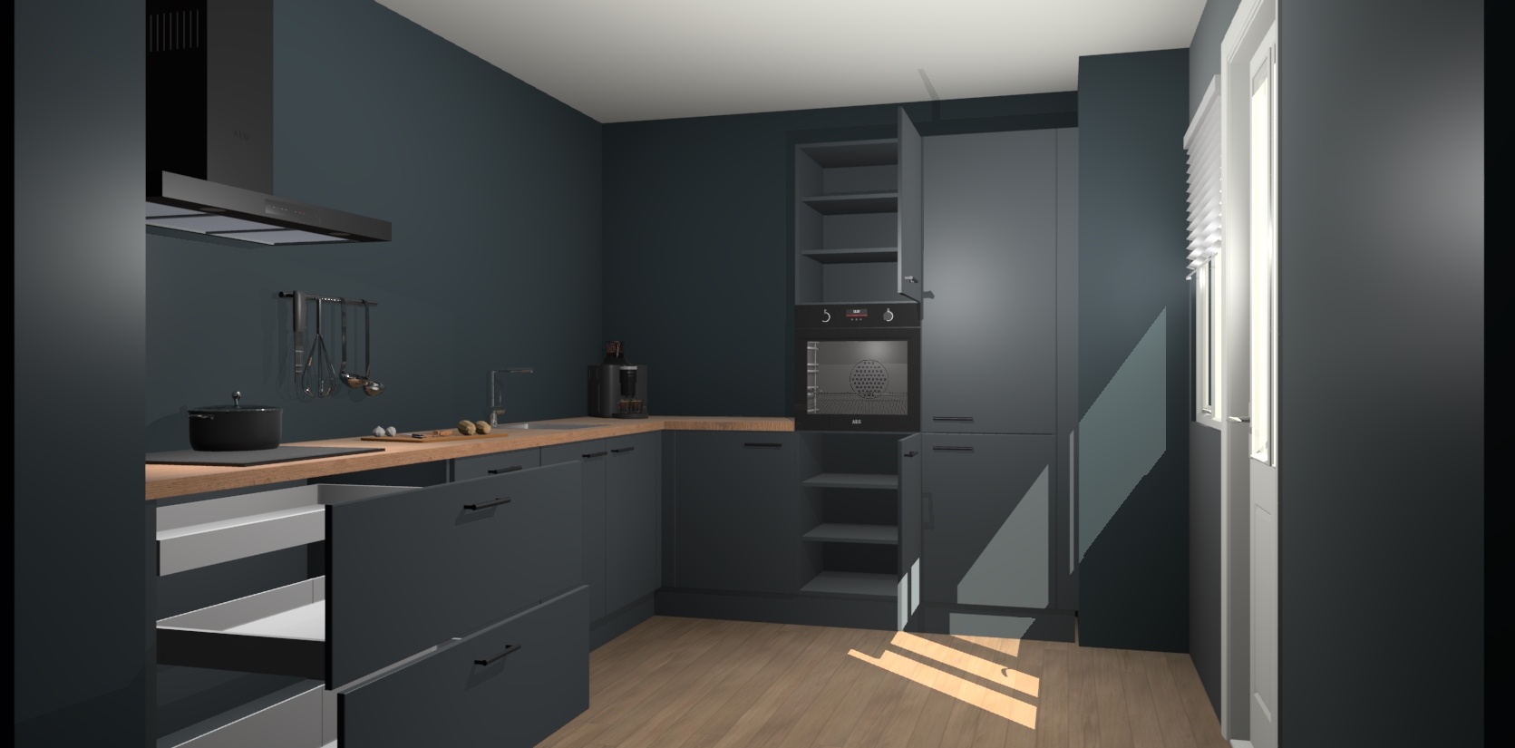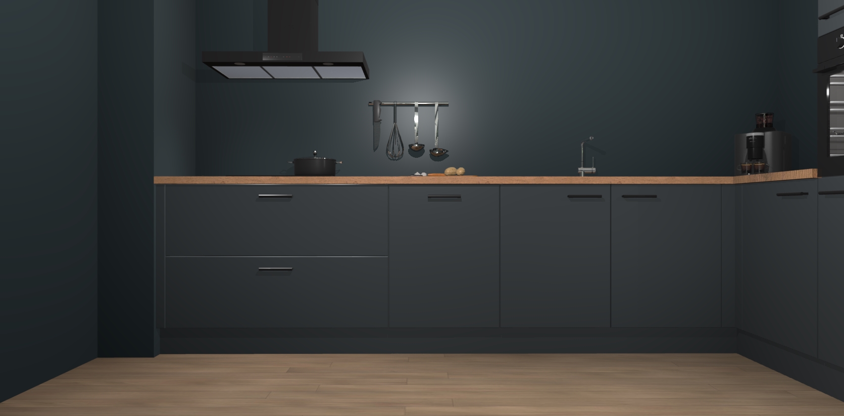 Welkom bij de onyxgrijze keuken Portland. Deze prachtige keuken zal de komende jaren het middelpunt van de belangstelling in uw huis zijn. Uitgerust met vijf inbouwapparaten komt u nooit kookgereedschap tekort. Bovendien geeft de warme houtlook elke ruimte een uitnodigende en tijdloze uitstraling.