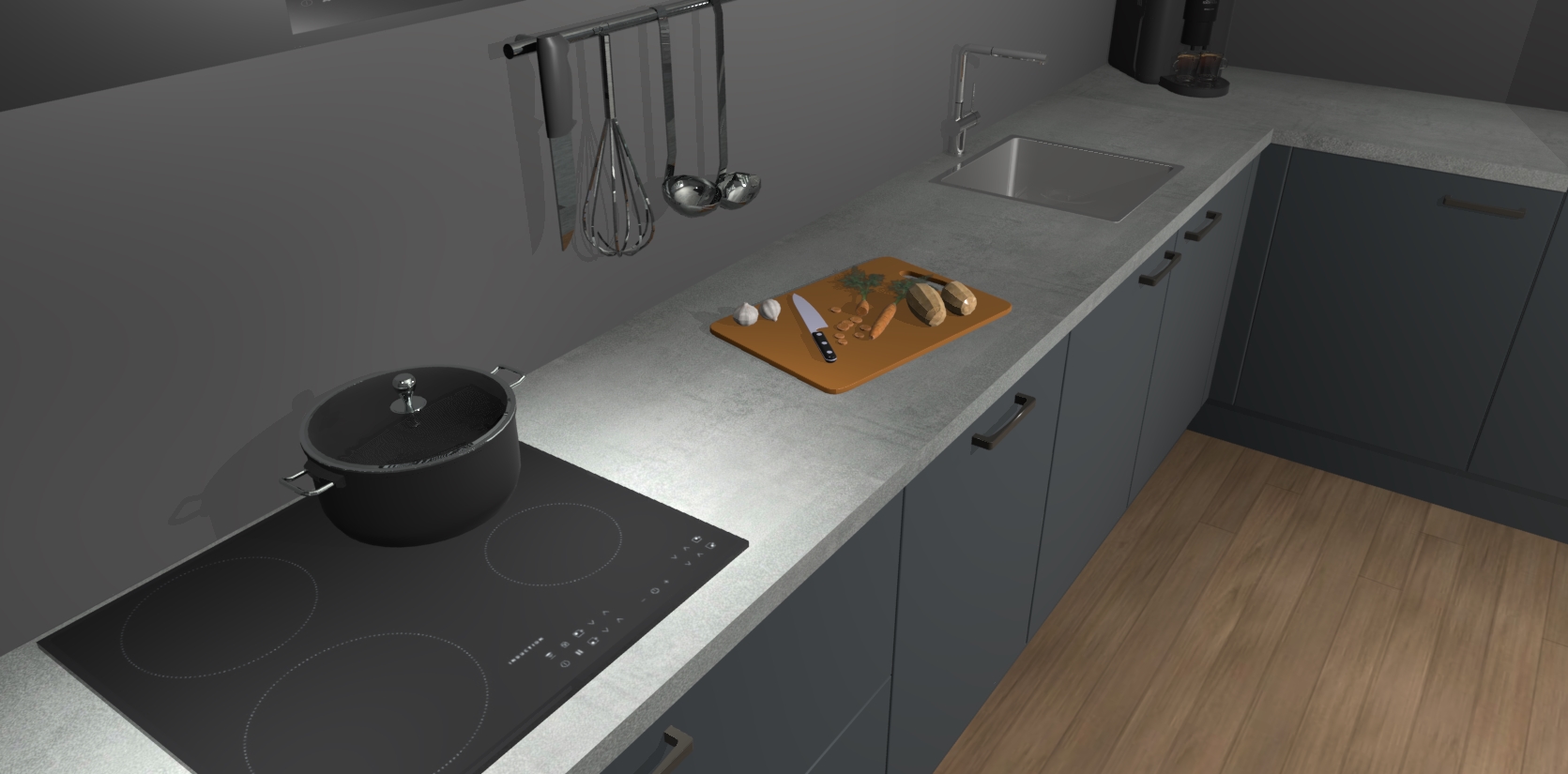 Inclusief plinten, stelpoten en werkblad