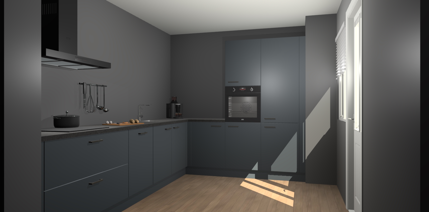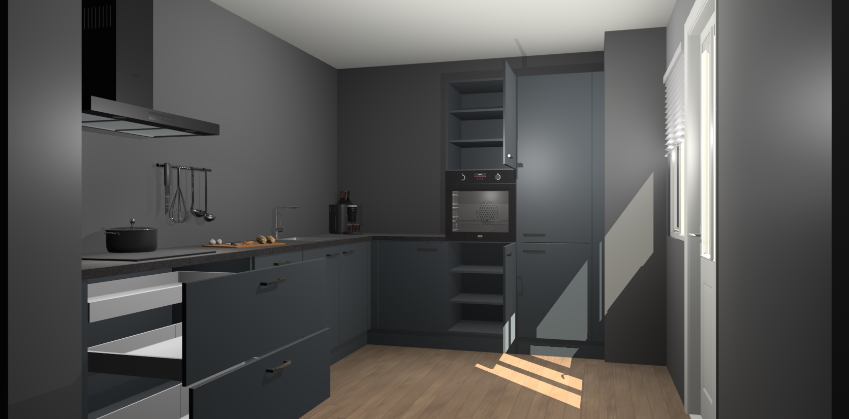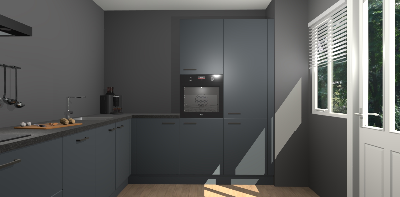 Welkom bij de onyxgrijze keuken Portland. Deze prachtige keuken zal de komende jaren het middelpunt van de belangstelling in uw huis zijn. Uitgerust met vijf inbouwapparaten komt u nooit kookgereedschap tekort. Bovendien geeft de warme houtlook elke ruimte een uitnodigende en tijdloze uitstraling.