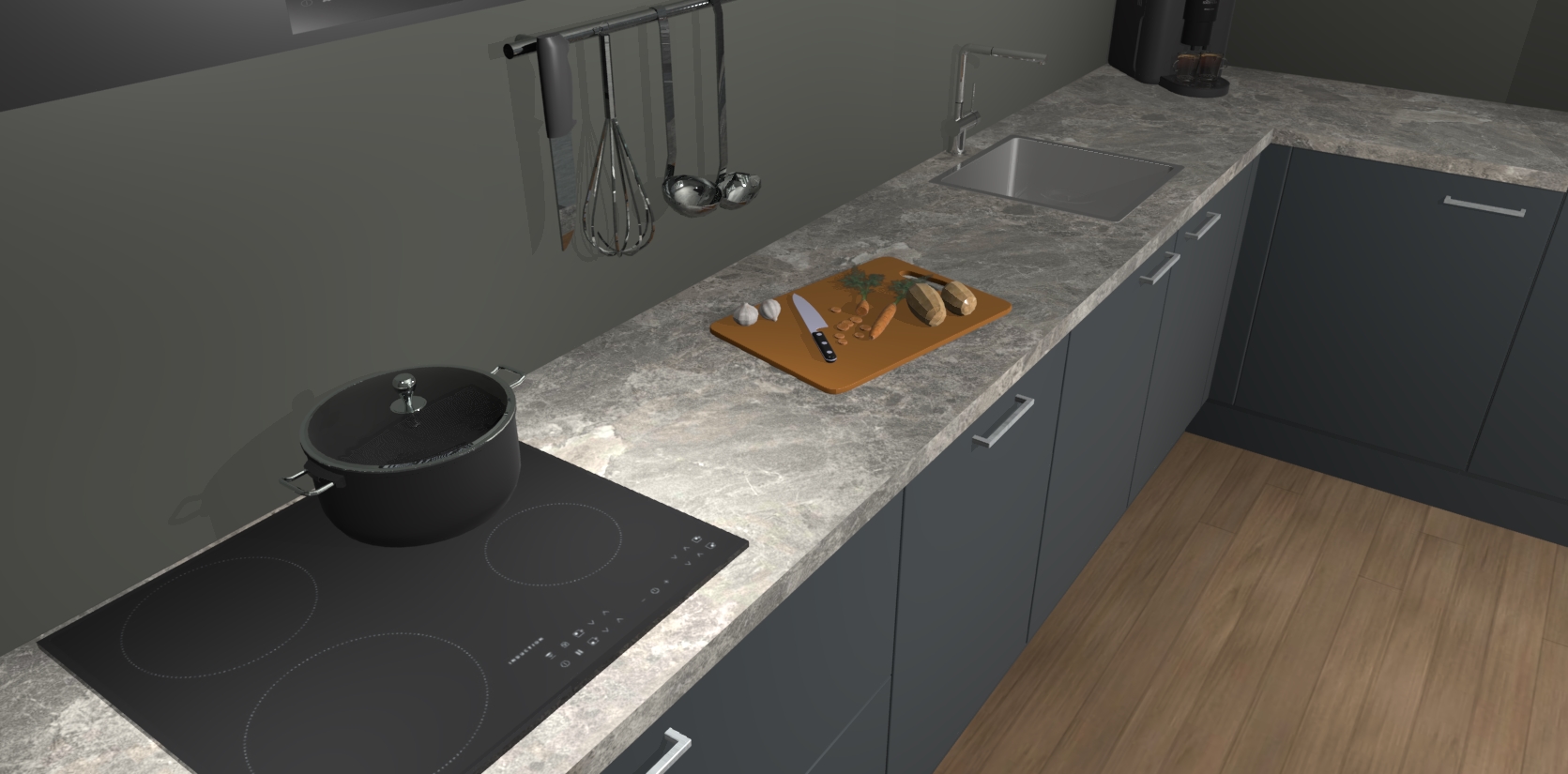 Welkom bij de onyxgrijze keuken Portland. Deze prachtige keuken zal de komende jaren het middelpunt van de belangstelling in uw huis zijn. Uitgerust met vijf inbouwapparaten komt u nooit kookgereedschap tekort. Bovendien geeft de warme houtlook elke ruimte een uitnodigende en tijdloze uitstraling.