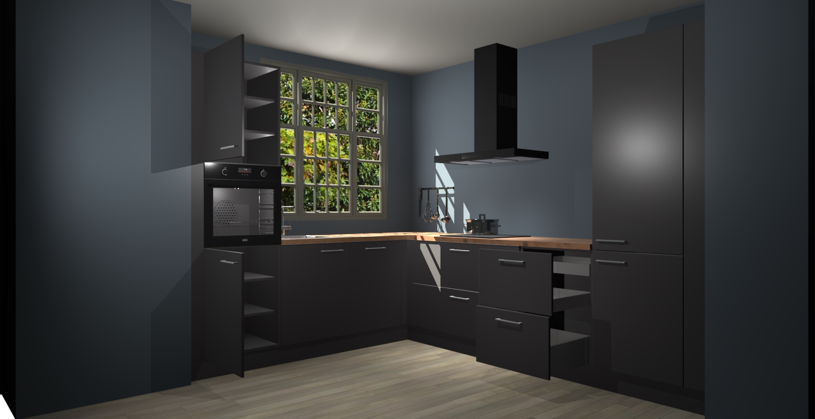 Met een modern, tijdloos design en ruime opslagruimte, zult u zich in no-time thuis voelen in uw nieuwe keuken. Uw leven wordt eenvoudiger met de soft-close deuren die voor het ultieme stille comfort zorgen - geen geluid dat u stoort terwijl u kookt. Ook is de keuken voorzien van 5 ingebouwde apparaten: een oven, inductie kookplaat, afzuigkap, vaatwasser en koelkast. Deze kunnen gemakkelijk na bestelling worden bijgewerkt naar AEG - waardoor uw luxe ervaring compleet is.