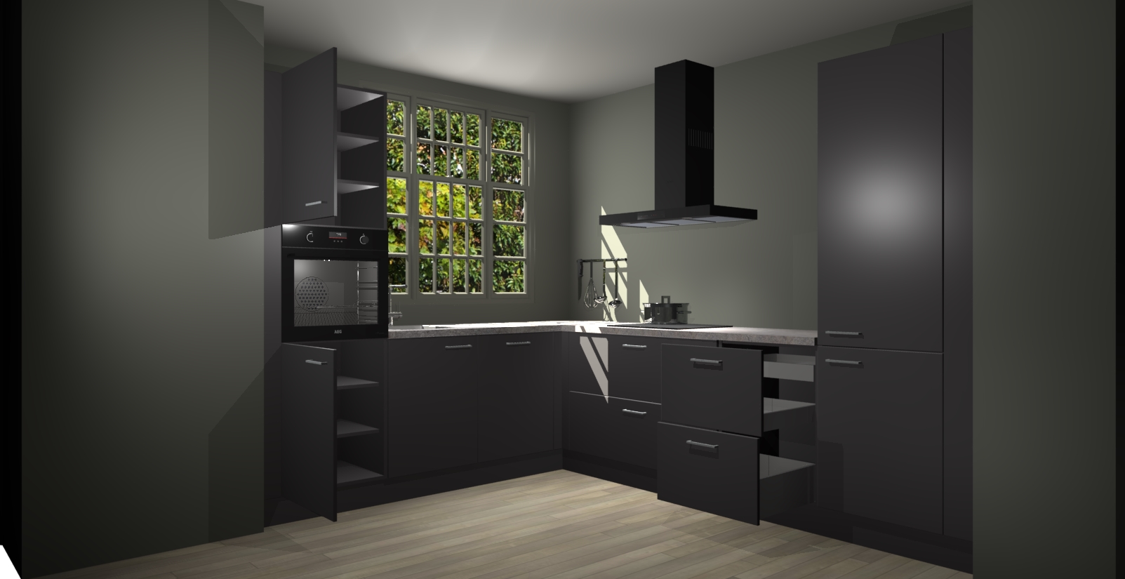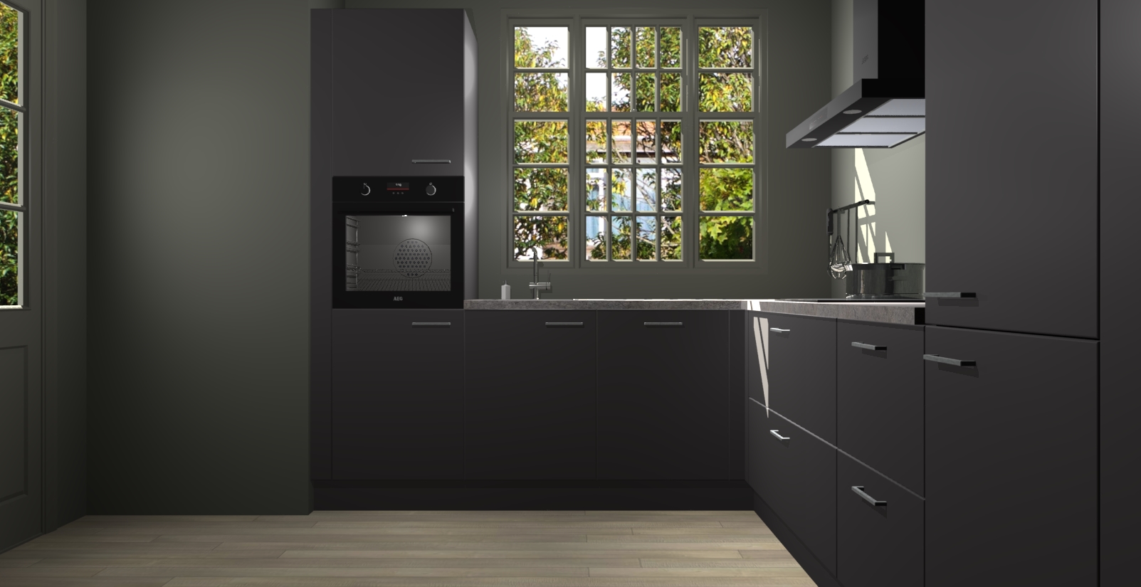 Met een modern, tijdloos design en ruime opslagruimte, zult u zich in no-time thuis voelen in uw nieuwe keuken. Uw leven wordt eenvoudiger met de soft-close deuren die voor het ultieme stille comfort zorgen - geen geluid dat u stoort terwijl u kookt. Ook is de keuken voorzien van 5 ingebouwde apparaten: een oven, inductie kookplaat, afzuigkap, vaatwasser en koelkast. Deze kunnen gemakkelijk na bestelling worden bijgewerkt naar AEG - waardoor uw luxe ervaring compleet is.