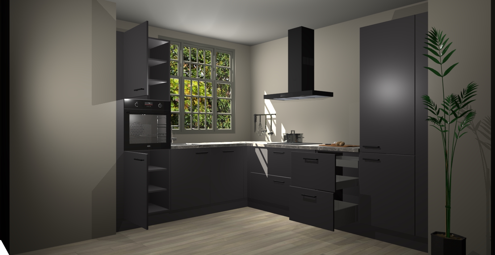 Met een modern, tijdloos design en ruime opslagruimte, zult u zich in no-time thuis voelen in uw nieuwe keuken. Uw leven wordt eenvoudiger met de soft-close deuren die voor het ultieme stille comfort zorgen - geen geluid dat u stoort terwijl u kookt. Ook is de keuken voorzien van 5 ingebouwde apparaten: een oven, inductie kookplaat, afzuigkap, vaatwasser en koelkast. Deze kunnen gemakkelijk na bestelling worden bijgewerkt naar AEG - waardoor uw luxe ervaring compleet is.