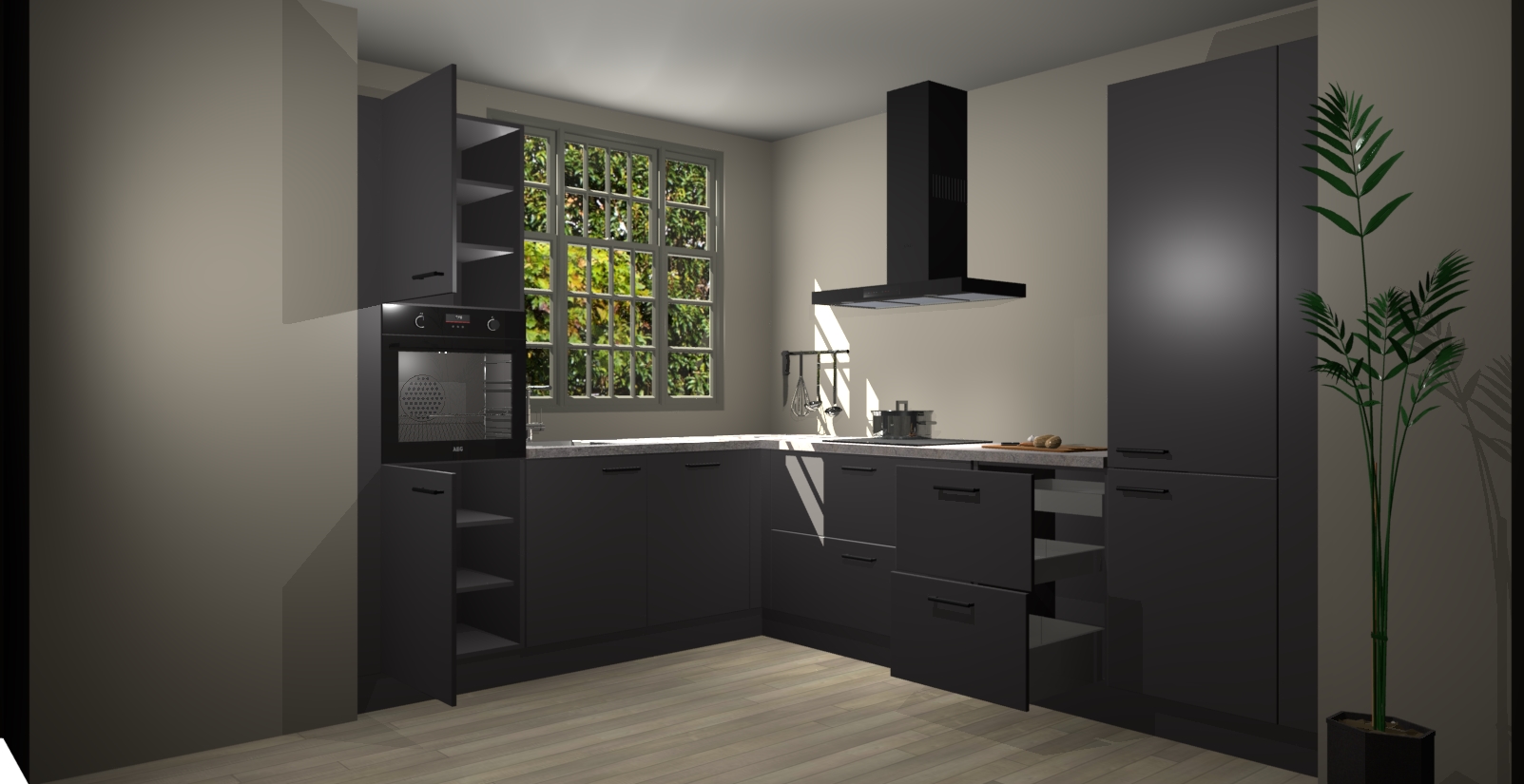Met een modern, tijdloos design en ruime opslagruimte, zult u zich in no-time thuis voelen in uw nieuwe keuken. Uw leven wordt eenvoudiger met de soft-close deuren die voor het ultieme stille comfort zorgen - geen geluid dat u stoort terwijl u kookt. Ook is de keuken voorzien van 5 ingebouwde apparaten: een oven, inductie kookplaat, afzuigkap, vaatwasser en koelkast. Deze kunnen gemakkelijk na bestelling worden bijgewerkt naar AEG - waardoor uw luxe ervaring compleet is.