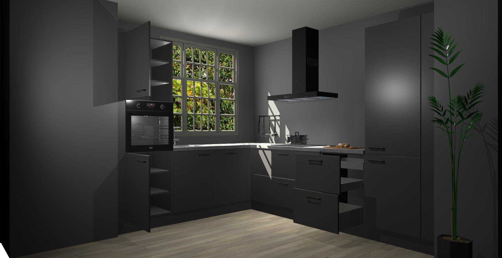 Met een modern, tijdloos design en ruime opslagruimte, zult u zich in no-time thuis voelen in uw nieuwe keuken. Uw leven wordt eenvoudiger met de soft-close deuren die voor het ultieme stille comfort zorgen - geen geluid dat u stoort terwijl u kookt. Ook is de keuken voorzien van 5 ingebouwde apparaten: een oven, inductie kookplaat, afzuigkap, vaatwasser en koelkast. Deze kunnen gemakkelijk na bestelling worden bijgewerkt naar AEG - waardoor uw luxe ervaring compleet is.