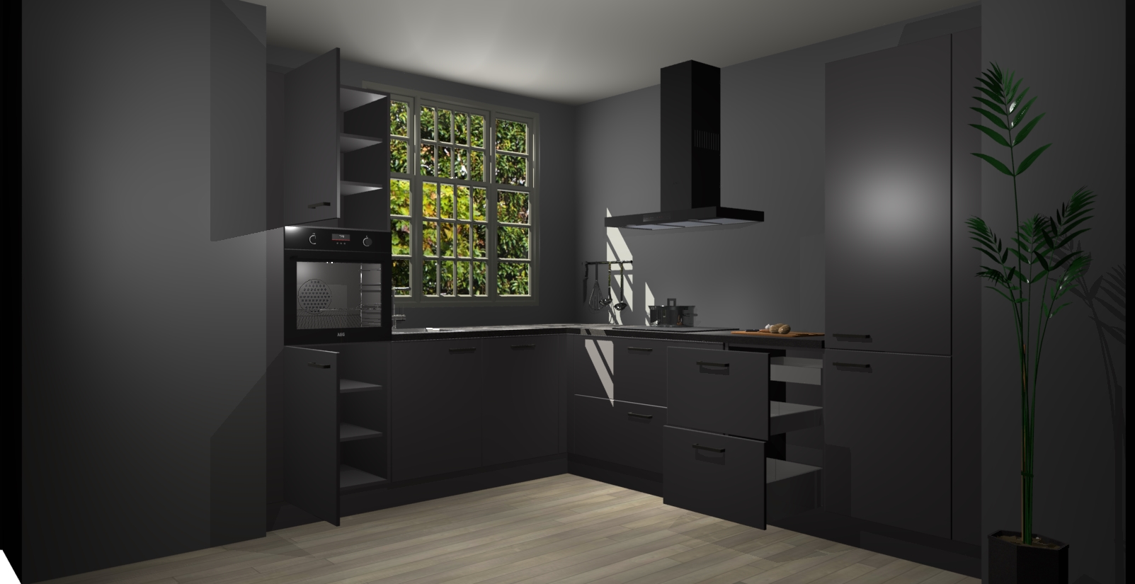 Met een modern, tijdloos design en ruime opslagruimte, zult u zich in no-time thuis voelen in uw nieuwe keuken. Uw leven wordt eenvoudiger met de soft-close deuren die voor het ultieme stille comfort zorgen - geen geluid dat u stoort terwijl u kookt. Ook is de keuken voorzien van 5 ingebouwde apparaten: een oven, inductie kookplaat, afzuigkap, vaatwasser en koelkast. Deze kunnen gemakkelijk na bestelling worden bijgewerkt naar AEG - waardoor uw luxe ervaring compleet is.