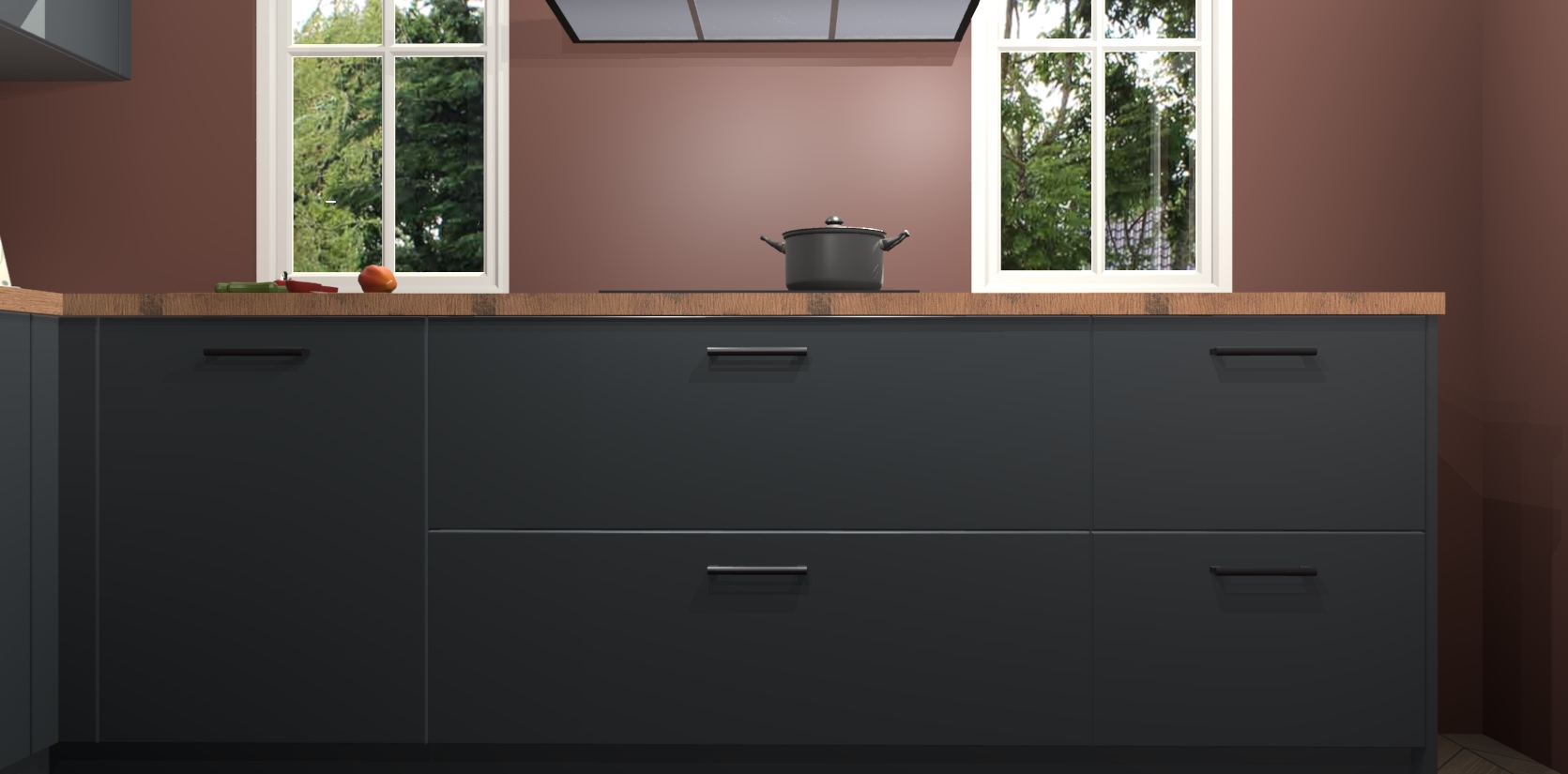 In deze box zijn alle kleuren verzameld van de deuren en werkbladen. Vraag de gratis kleurenbox aan en kijk thuis rustig verder!