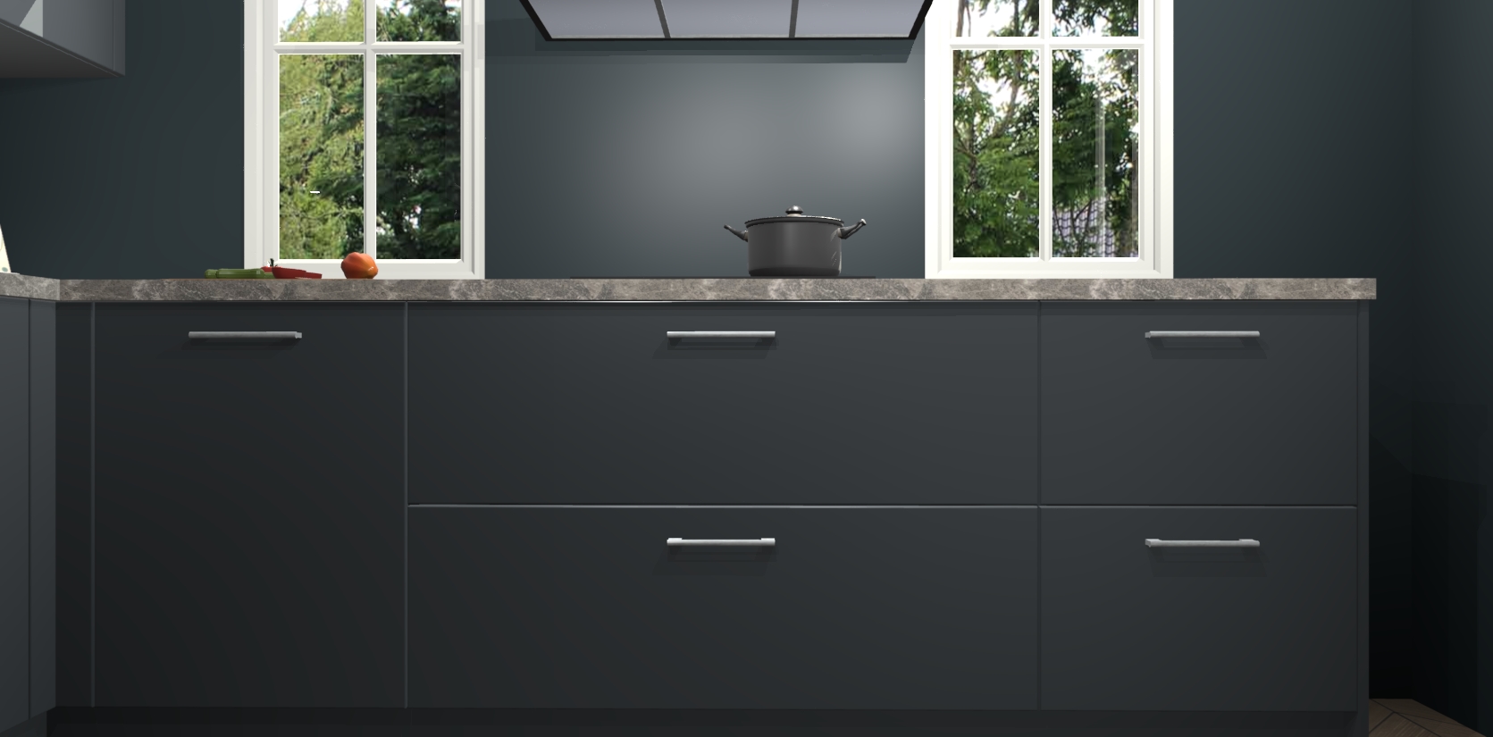 In deze box zijn alle kleuren verzameld van de deuren en werkbladen. Vraag de gratis kleurenbox aan en kijk thuis rustig verder!