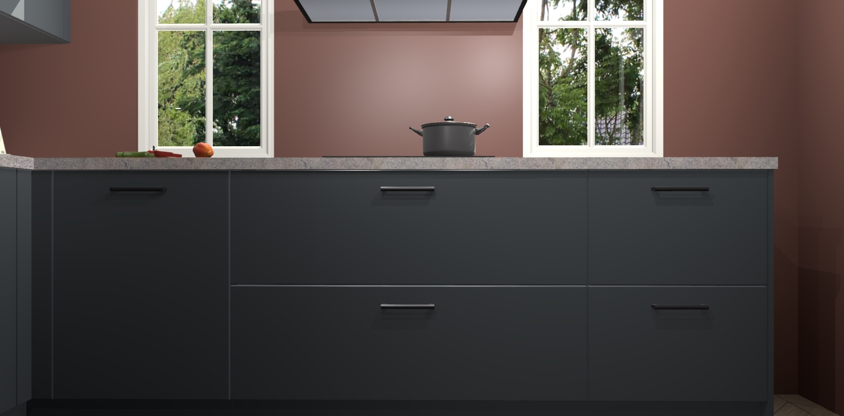 In deze box zijn alle kleuren verzameld van de deuren en werkbladen. Vraag de gratis kleurenbox aan en kijk thuis rustig verder!