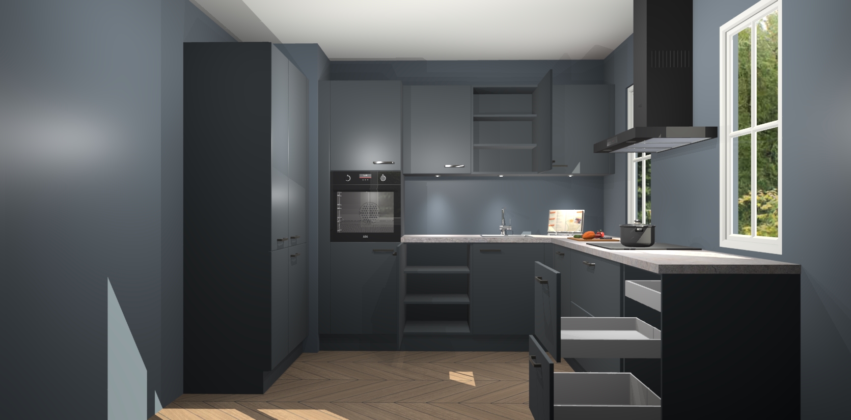 En met onze scherpe prijzen hoeft u niet in te leveren op kwaliteit. Onyxgrijze keuken Regina is de perfecte combinatie van functioneel en betaalbaar, dus waarom zou u ergens anders zoeken naar de keuken van uw dromen?
