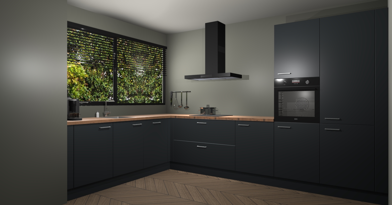 Met een modern, tijdloos design en ruime opslagruimte, zult u zich in no-time thuis voelen in uw nieuwe keuken. Uw leven wordt eenvoudiger met de soft-close deuren die voor het ultieme stille comfort zorgen - geen geluid dat u stoort terwijl u kookt. Ook is de keuken voorzien van 5 ingebouwde apparaten: een oven, inductie kookplaat, afzuigkap, vaatwasser en koelkast. Deze kunnen gemakkelijk na bestelling worden bijgewerkt naar AEG - waardoor uw luxe ervaring compleet is.