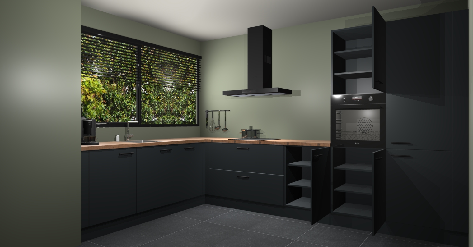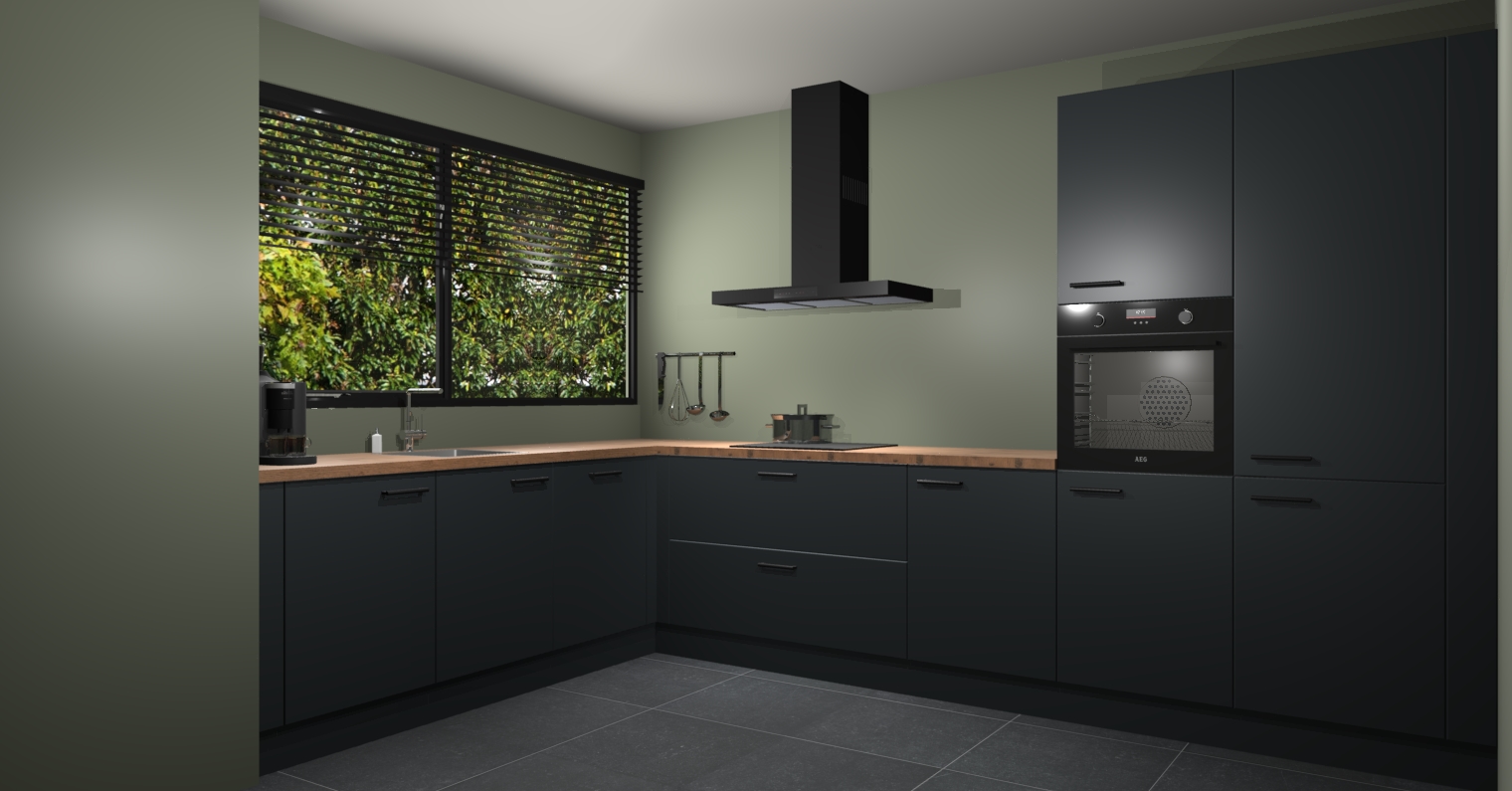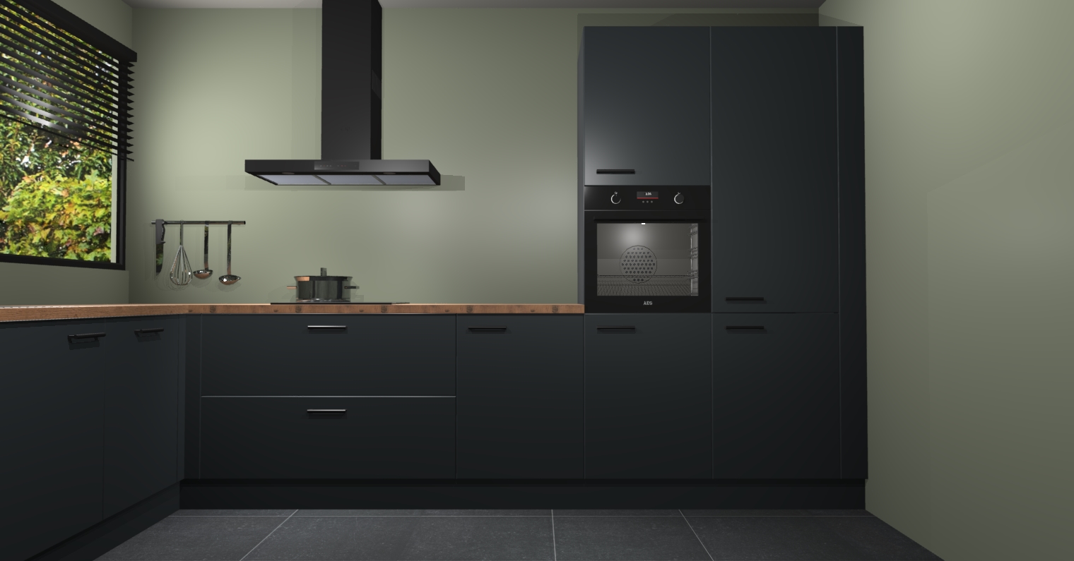 Met een modern, tijdloos design en ruime opslagruimte, zult u zich in no-time thuis voelen in uw nieuwe keuken. Uw leven wordt eenvoudiger met de soft-close deuren die voor het ultieme stille comfort zorgen - geen geluid dat u stoort terwijl u kookt. Ook is de keuken voorzien van 5 ingebouwde apparaten: een oven, inductie kookplaat, afzuigkap, vaatwasser en koelkast. Deze kunnen gemakkelijk na bestelling worden bijgewerkt naar AEG - waardoor uw luxe ervaring compleet is.