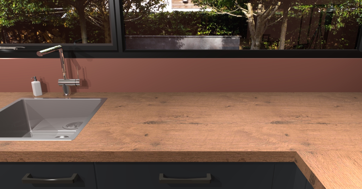• Bij een hoekwerkblad zijn de hoeken in gevreesd en op maat gemaakt