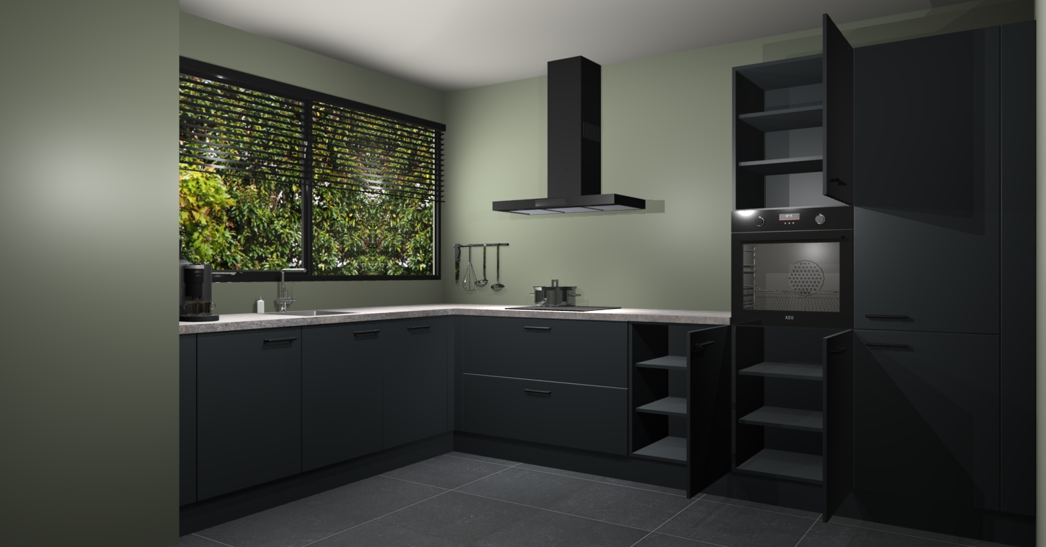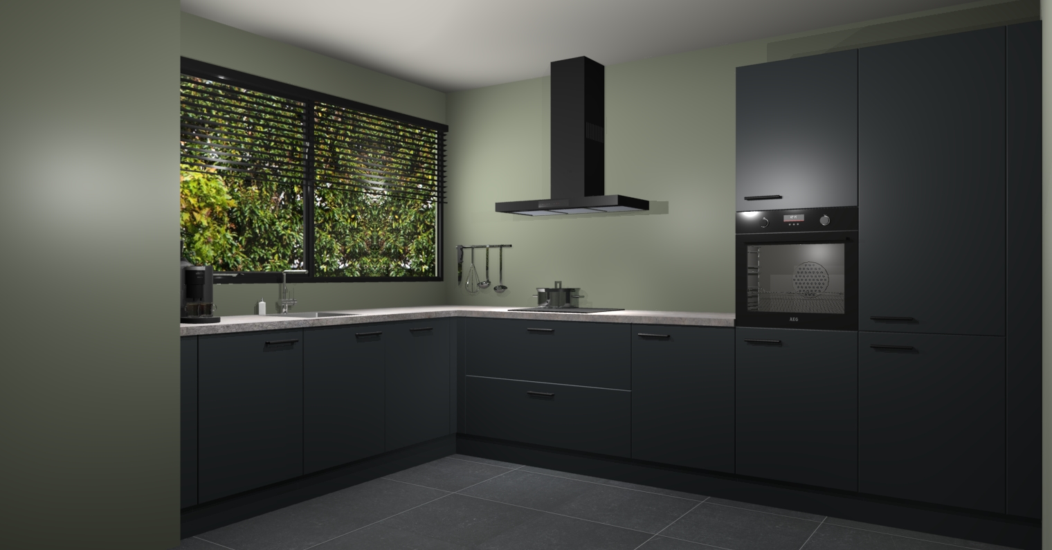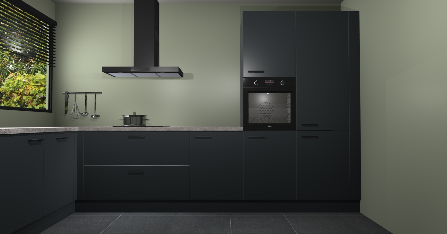 Met een modern, tijdloos design en ruime opslagruimte, zult u zich in no-time thuis voelen in uw nieuwe keuken. Uw leven wordt eenvoudiger met de soft-close deuren die voor het ultieme stille comfort zorgen - geen geluid dat u stoort terwijl u kookt. Ook is de keuken voorzien van 5 ingebouwde apparaten: een oven, inductie kookplaat, afzuigkap, vaatwasser en koelkast. Deze kunnen gemakkelijk na bestelling worden bijgewerkt naar AEG - waardoor uw luxe ervaring compleet is.