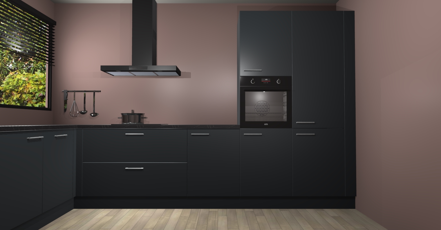 Met een modern, tijdloos design en ruime opslagruimte, zult u zich in no-time thuis voelen in uw nieuwe keuken. Uw leven wordt eenvoudiger met de soft-close deuren die voor het ultieme stille comfort zorgen - geen geluid dat u stoort terwijl u kookt. Ook is de keuken voorzien van 5 ingebouwde apparaten: een oven, inductie kookplaat, afzuigkap, vaatwasser en koelkast. Deze kunnen gemakkelijk na bestelling worden bijgewerkt naar AEG - waardoor uw luxe ervaring compleet is.