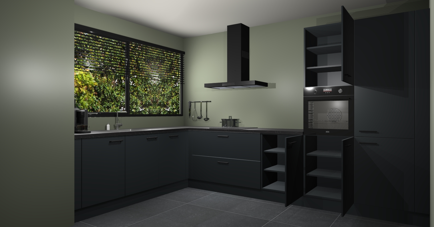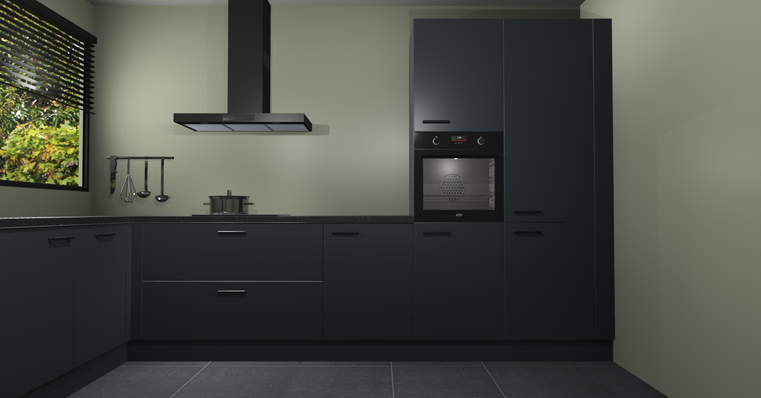 Met een modern, tijdloos design en ruime opslagruimte, zult u zich in no-time thuis voelen in uw nieuwe keuken. Uw leven wordt eenvoudiger met de soft-close deuren die voor het ultieme stille comfort zorgen - geen geluid dat u stoort terwijl u kookt. Ook is de keuken voorzien van 5 ingebouwde apparaten: een oven, inductie kookplaat, afzuigkap, vaatwasser en koelkast. Deze kunnen gemakkelijk na bestelling worden bijgewerkt naar AEG - waardoor uw luxe ervaring compleet is.