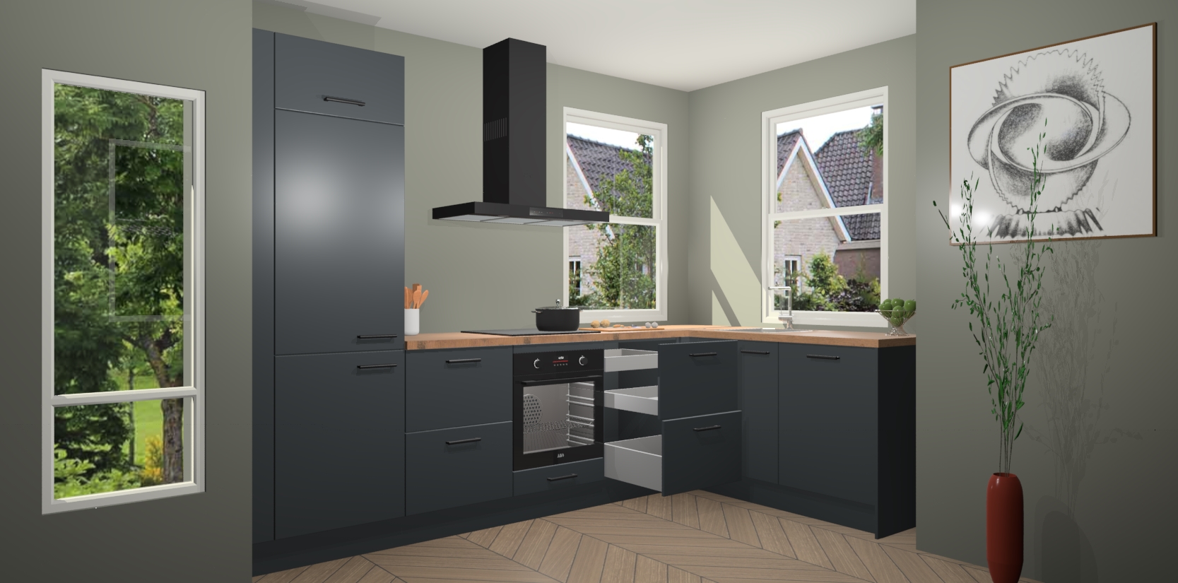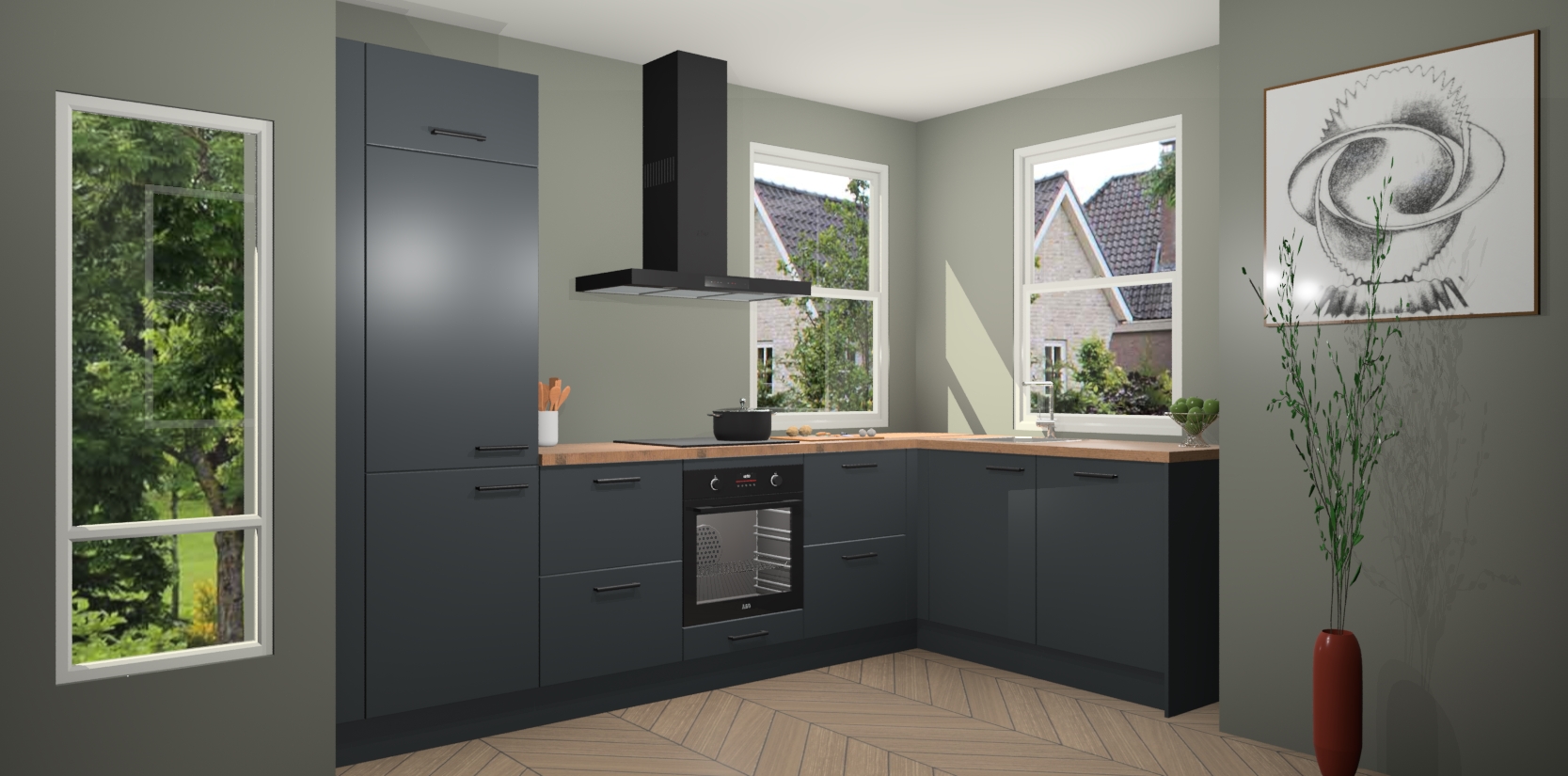 Welkom bij de Onyxgrijze keuken Salzburg! Met een chique combinatie van een prachtig houten werkblad, klassiek design en altijd concurrerende prijzen is de Onyxgrijze keuken Salzburg de keuken van uw dromen! Deze keuken is perfect voor alle huisformaten en decorstijlen en straalt stijl en verfijning uit. Van het tijdloze design tot de functionele functies, er is geen betere manier om de look van uw woon- of kookruimte te verbeteren.