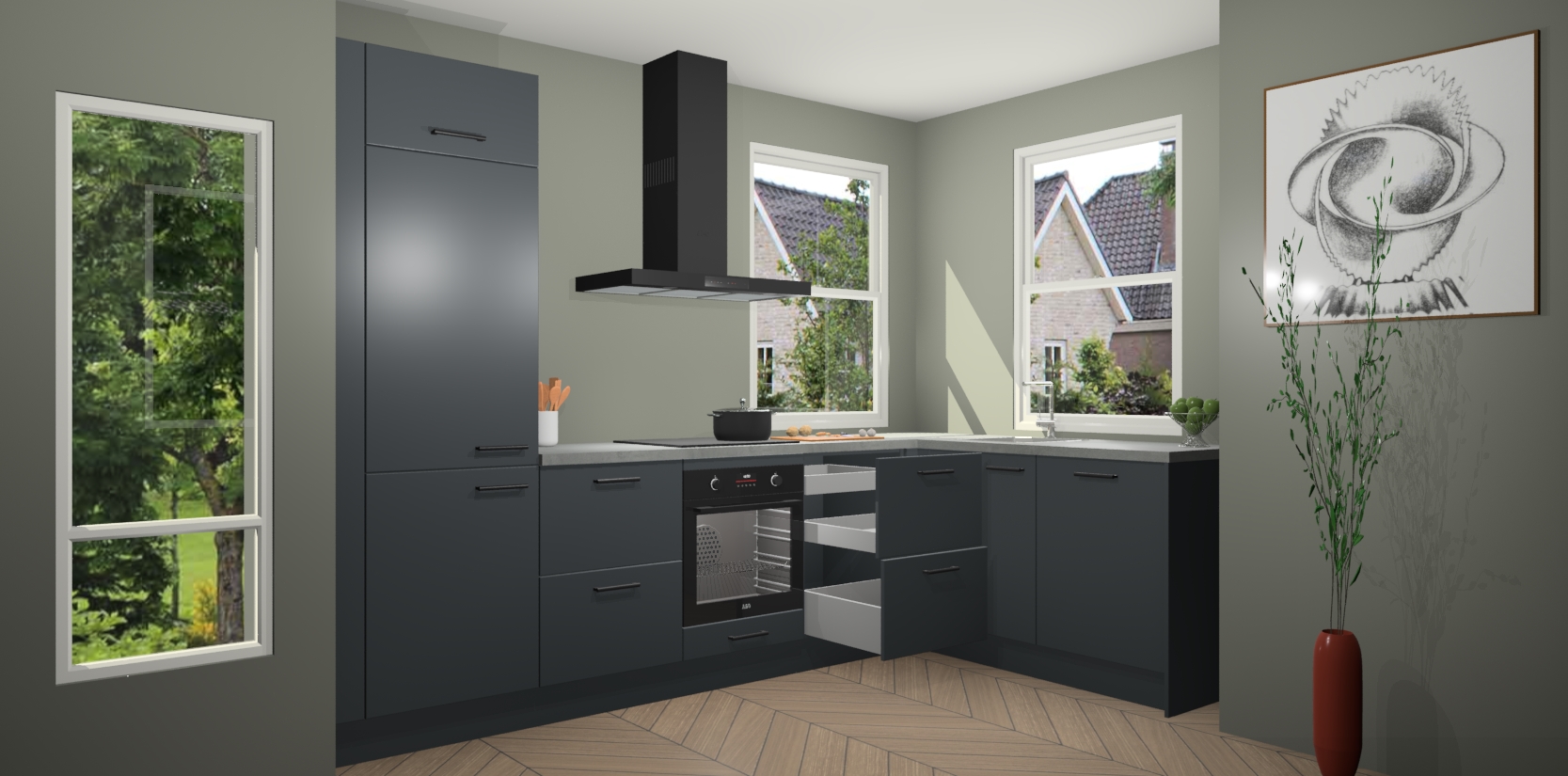 In deze box zijn alle kleuren verzameld van de deuren en werkbladen. Vraag de gratis kleurenbox aan en kijk thuis rustig verder!