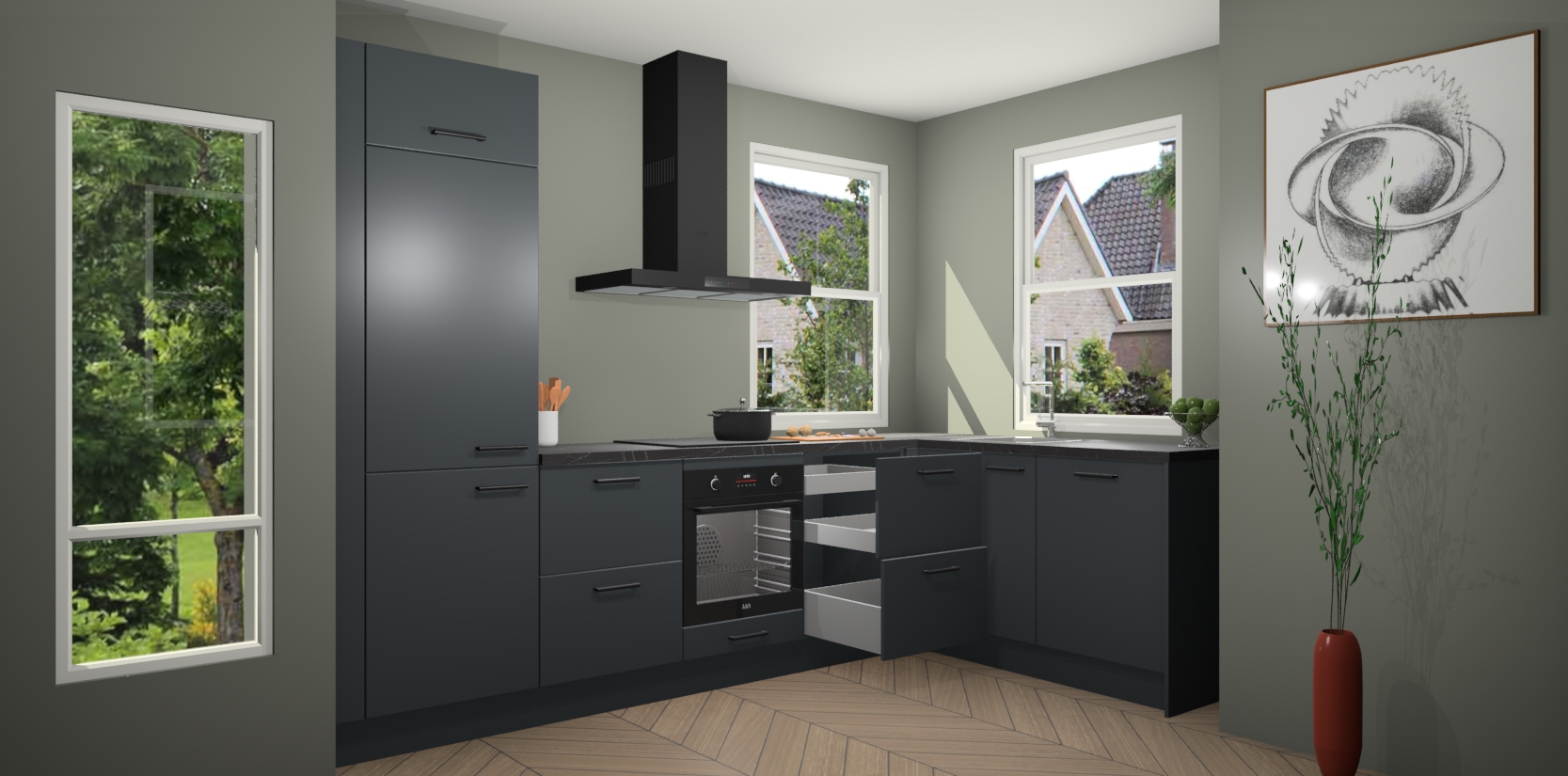 Welkom bij de Onyxgrijze keuken Salzburg! Met een chique combinatie van een prachtig houten werkblad, klassiek design en altijd concurrerende prijzen is de Onyxgrijze keuken Salzburg de keuken van uw dromen! Deze keuken is perfect voor alle huisformaten en decorstijlen en straalt stijl en verfijning uit. Van het tijdloze design tot de functionele functies, er is geen betere manier om de look van uw woon- of kookruimte te verbeteren.