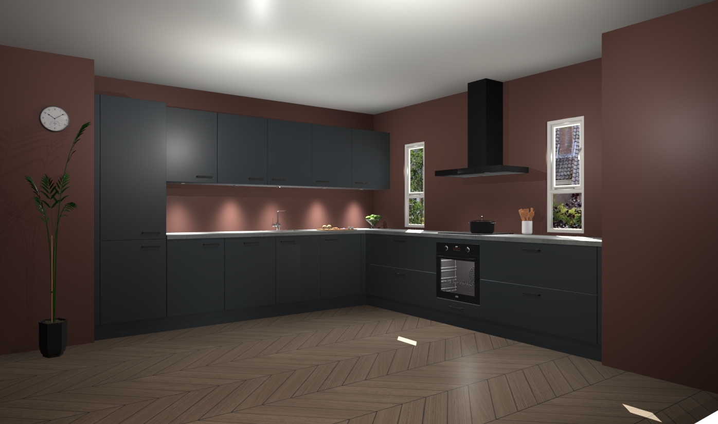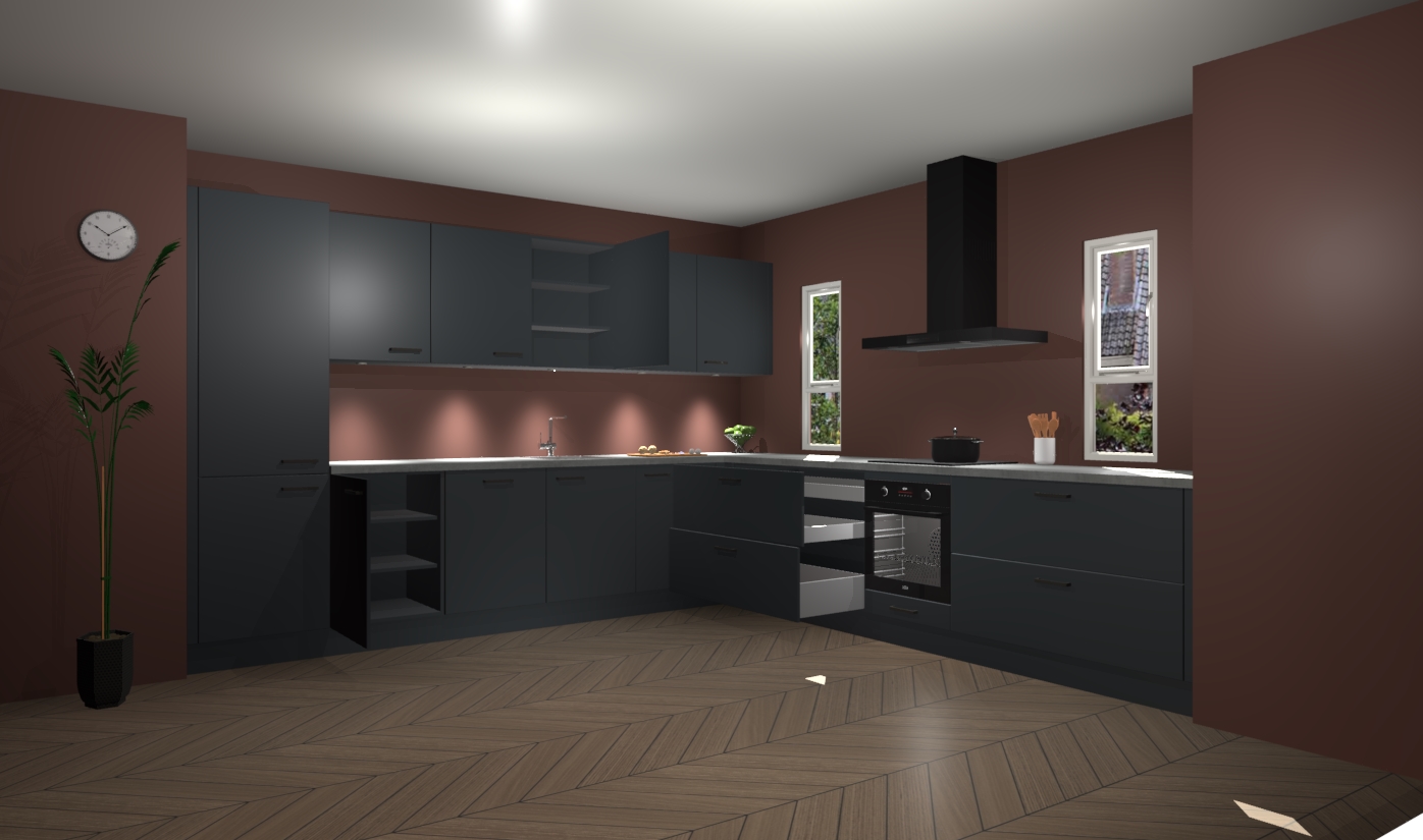 De onyxgrijze keuken is een ideale hoekkeuken en heeft alle functies en apparatuur die u maar nodig kunt hebben. Bij de bestelling krijgt u een oven, inductiekookplaat, afzuigkap, vaatwasser en koelkast - deze kunnen desgewenst eenvoudig worden uitgebreid naar AEG na bestellen. Elke kast wordt ook voor gemonteerd geleverd met soft close deuren die jarenlang gebruik beloven. Stelt u zich voor dat u geen gedoe heeft met vervelende montage - vanaf het moment dat u uw bestelling plaats, duurt het slechts 7 weken voor het bij u thuis geleverd wordt.