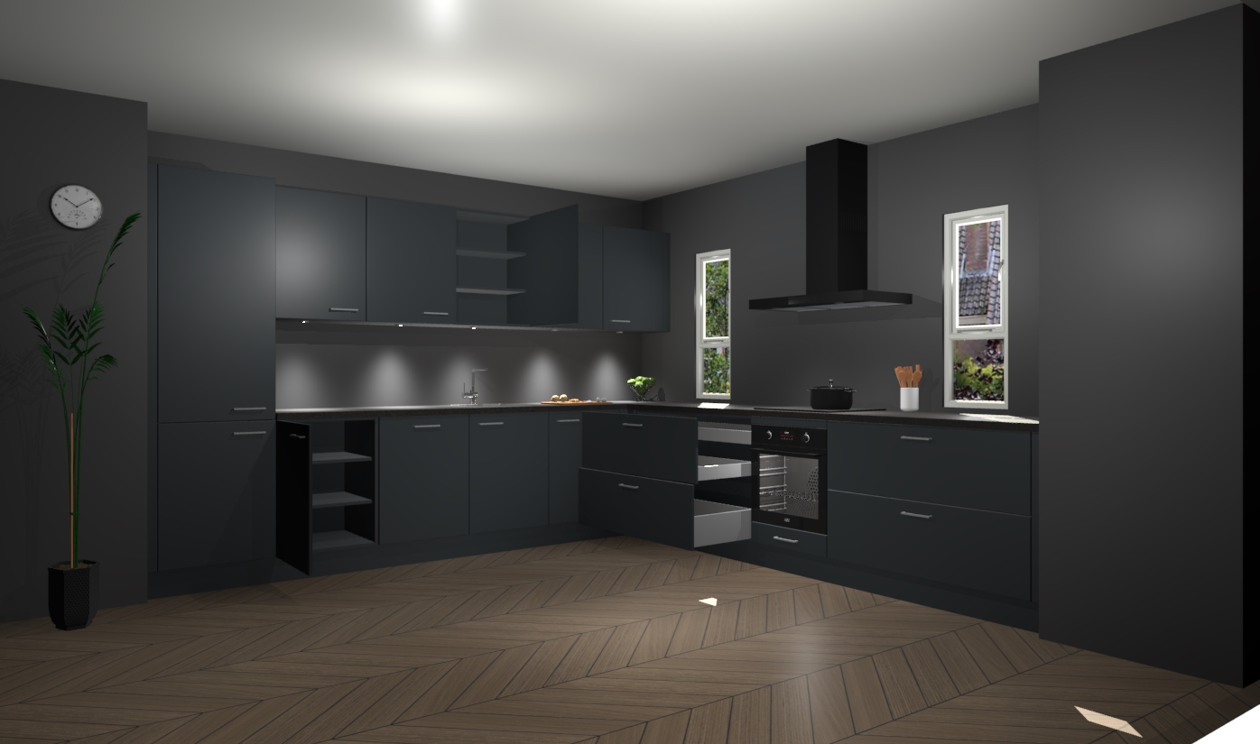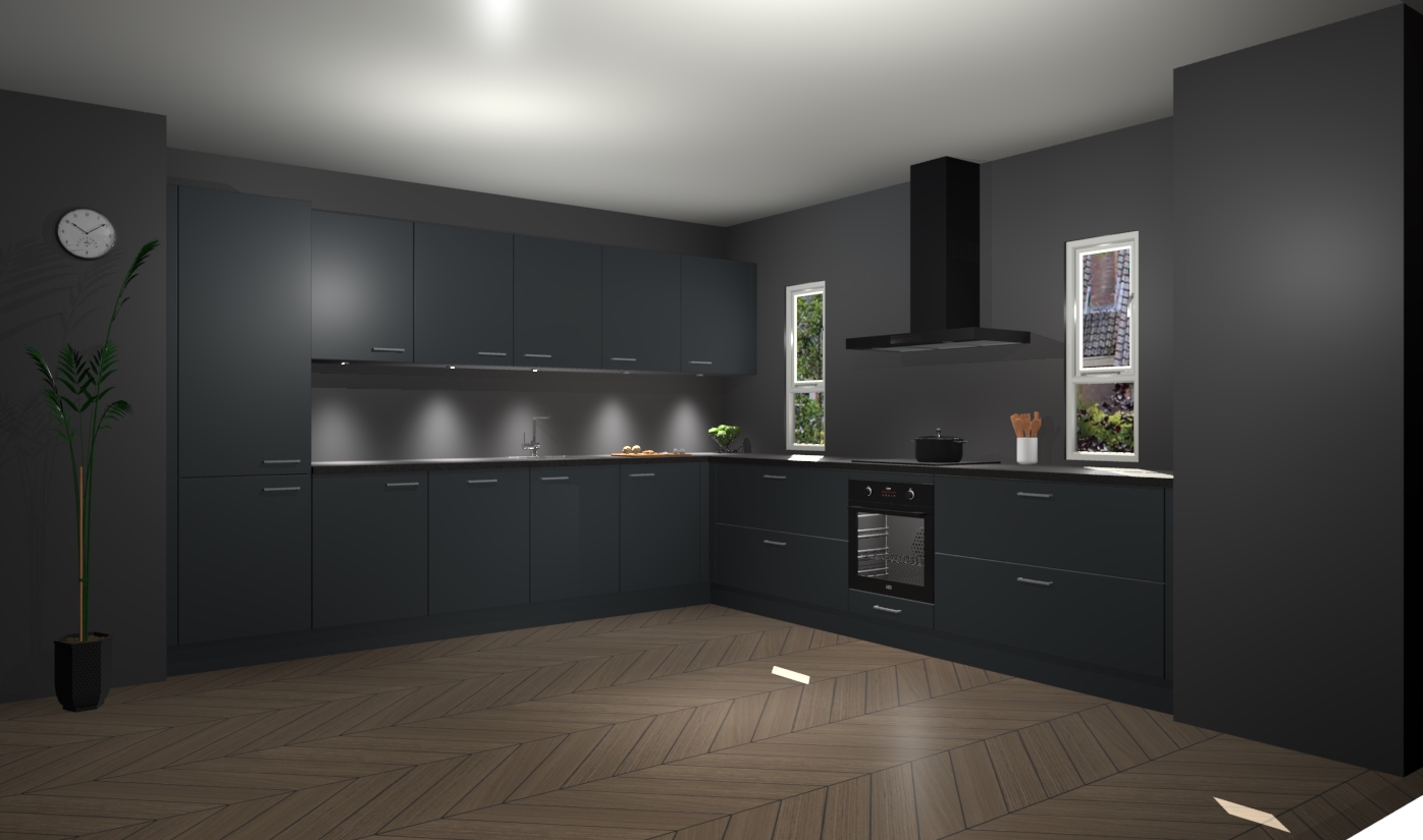 De onyxgrijze keuken is een ideale hoekkeuken en heeft alle functies en apparatuur die u maar nodig kunt hebben. Bij de bestelling krijgt u een oven, inductiekookplaat, afzuigkap, vaatwasser en koelkast - deze kunnen desgewenst eenvoudig worden uitgebreid naar AEG na bestellen. Elke kast wordt ook voor gemonteerd geleverd met soft close deuren die jarenlang gebruik beloven. Stelt u zich voor dat u geen gedoe heeft met vervelende montage - vanaf het moment dat u uw bestelling plaats, duurt het slechts 7 weken voor het bij u thuis geleverd wordt.