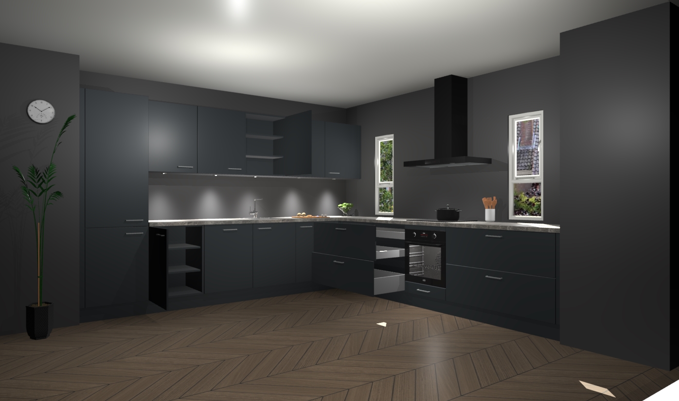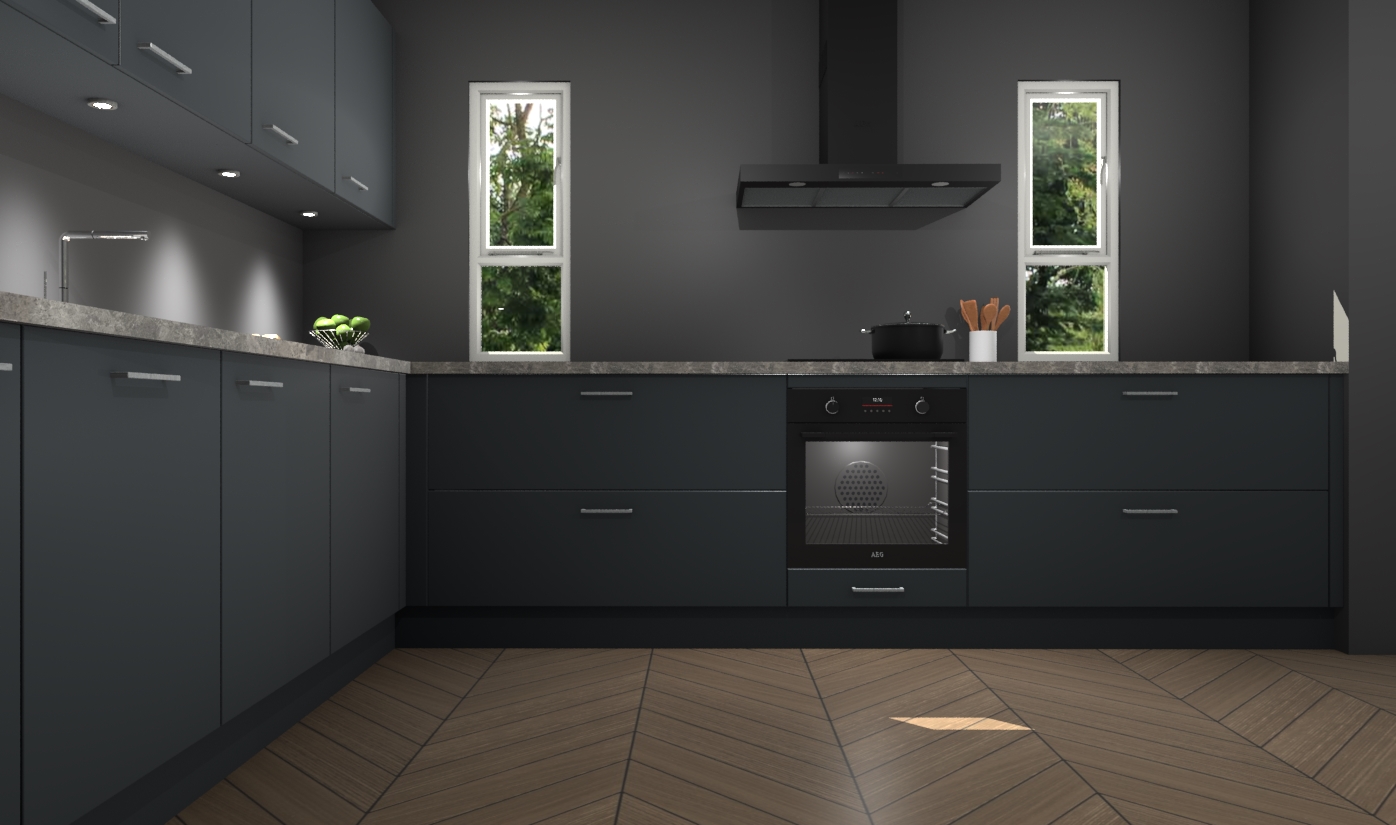 De onyxgrijze keuken is een ideale hoekkeuken en heeft alle functies en apparatuur die u maar nodig kunt hebben. Bij de bestelling krijgt u een oven, inductiekookplaat, afzuigkap, vaatwasser en koelkast - deze kunnen desgewenst eenvoudig worden uitgebreid naar AEG na bestellen. Elke kast wordt ook voor gemonteerd geleverd met soft close deuren die jarenlang gebruik beloven. Stelt u zich voor dat u geen gedoe heeft met vervelende montage - vanaf het moment dat u uw bestelling plaats, duurt het slechts 7 weken voor het bij u thuis geleverd wordt.