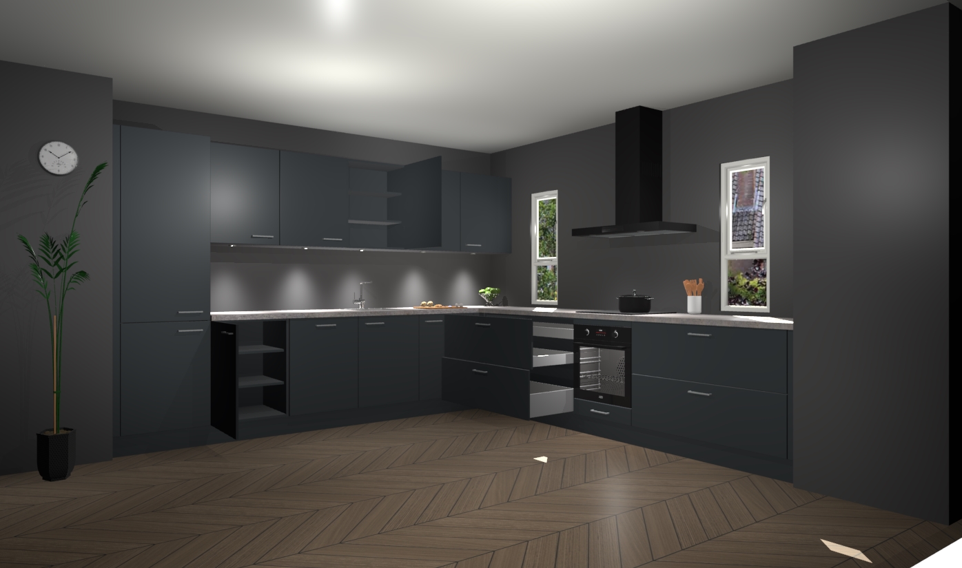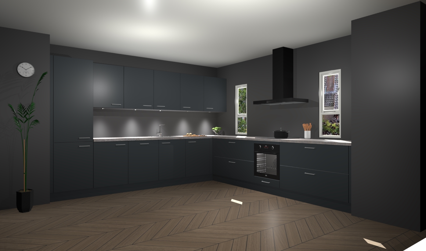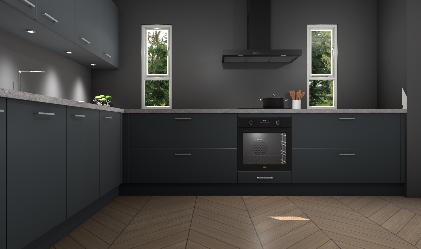 De onyxgrijze keuken is een ideale hoekkeuken en heeft alle functies en apparatuur die u maar nodig kunt hebben. Bij de bestelling krijgt u een oven, inductiekookplaat, afzuigkap, vaatwasser en koelkast - deze kunnen desgewenst eenvoudig worden uitgebreid naar AEG na bestellen. Elke kast wordt ook voor gemonteerd geleverd met soft close deuren die jarenlang gebruik beloven. Stelt u zich voor dat u geen gedoe heeft met vervelende montage - vanaf het moment dat u uw bestelling plaats, duurt het slechts 7 weken voor het bij u thuis geleverd wordt.