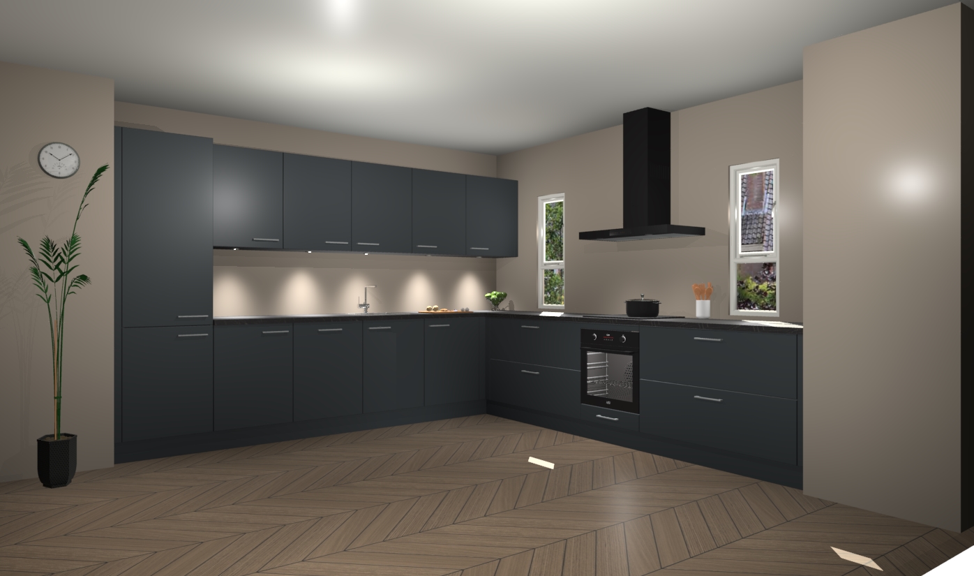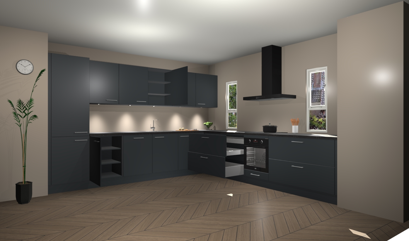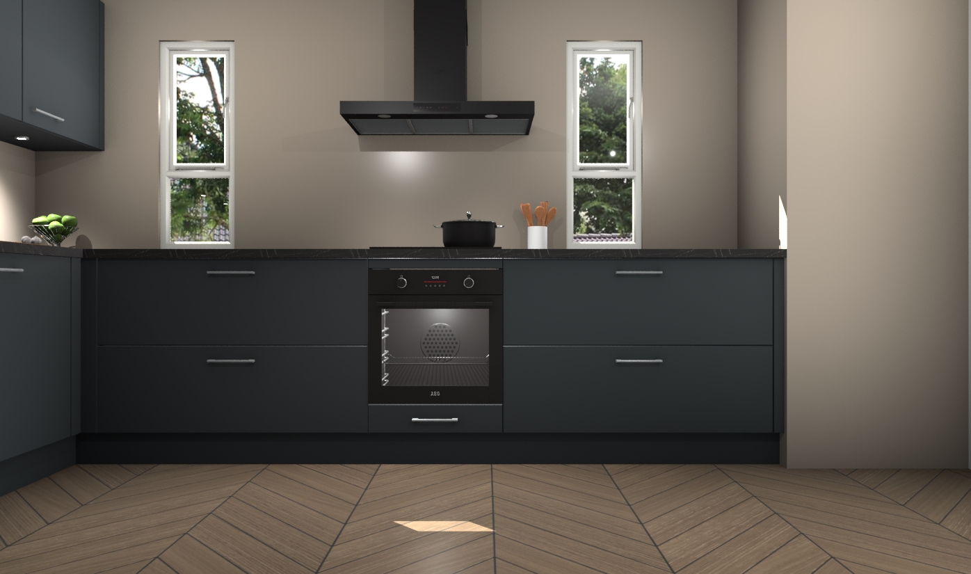 De onyxgrijze keuken is een ideale hoekkeuken en heeft alle functies en apparatuur die u maar nodig kunt hebben. Bij de bestelling krijgt u een oven, inductiekookplaat, afzuigkap, vaatwasser en koelkast - deze kunnen desgewenst eenvoudig worden uitgebreid naar AEG na bestellen. Elke kast wordt ook voor gemonteerd geleverd met soft close deuren die jarenlang gebruik beloven. Stelt u zich voor dat u geen gedoe heeft met vervelende montage - vanaf het moment dat u uw bestelling plaats, duurt het slechts 7 weken voor het bij u thuis geleverd wordt.