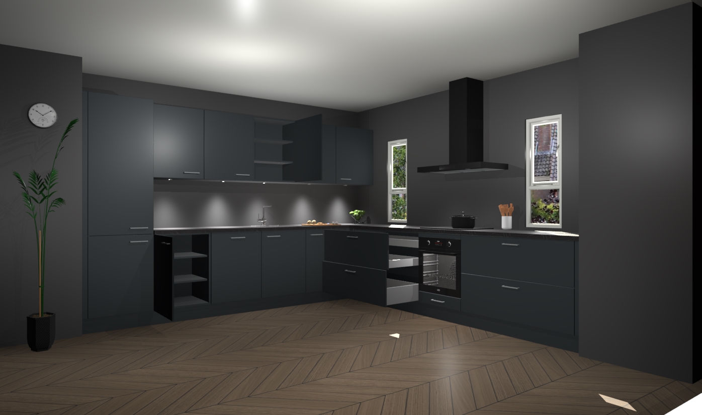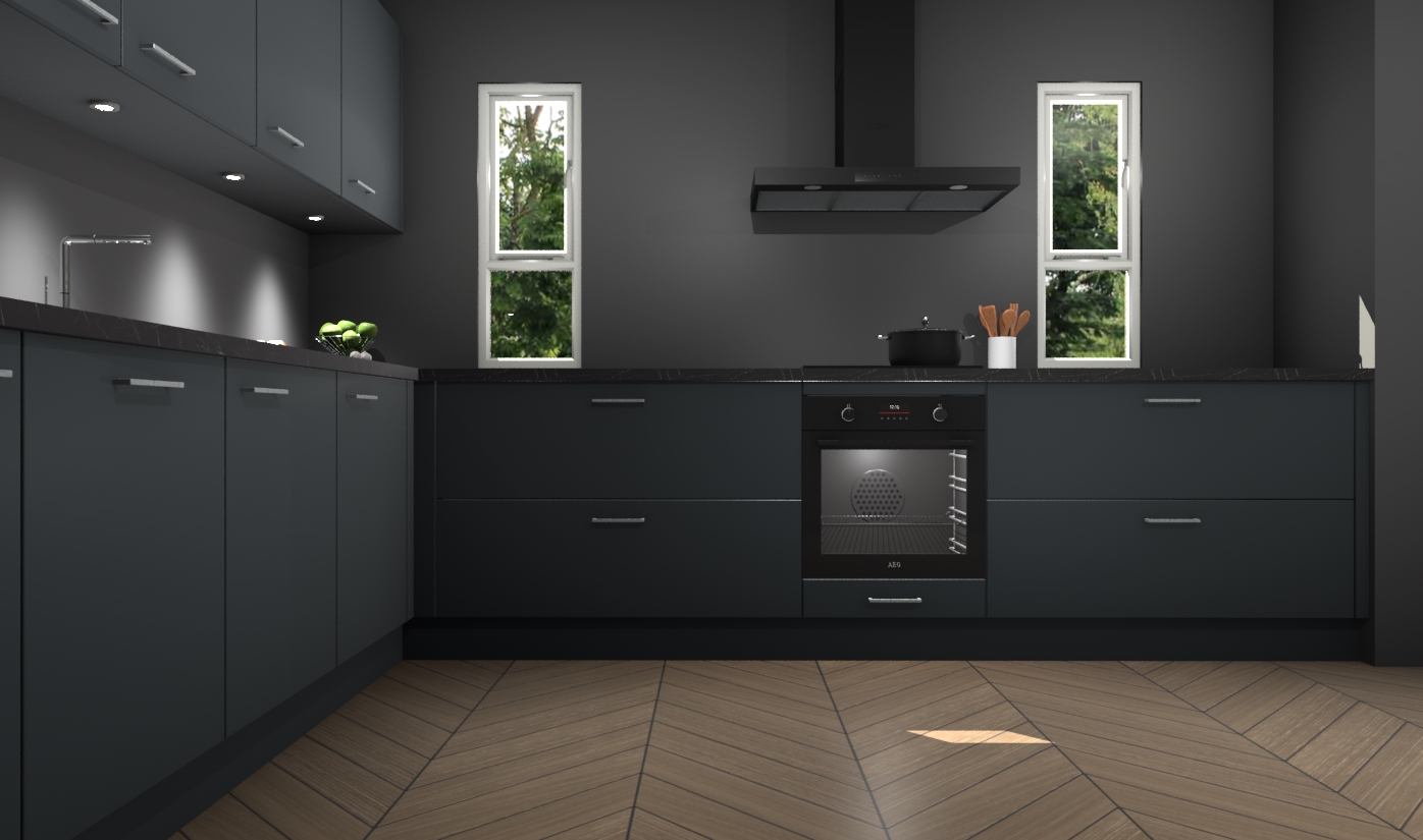 De onyxgrijze keuken is een ideale hoekkeuken en heeft alle functies en apparatuur die u maar nodig kunt hebben. Bij de bestelling krijgt u een oven, inductiekookplaat, afzuigkap, vaatwasser en koelkast - deze kunnen desgewenst eenvoudig worden uitgebreid naar AEG na bestellen. Elke kast wordt ook voor gemonteerd geleverd met soft close deuren die jarenlang gebruik beloven. Stelt u zich voor dat u geen gedoe heeft met vervelende montage - vanaf het moment dat u uw bestelling plaats, duurt het slechts 7 weken voor het bij u thuis geleverd wordt.
