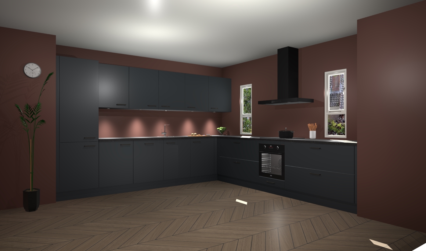 De onyxgrijze keuken is een ideale hoekkeuken en heeft alle functies en apparatuur die u maar nodig kunt hebben. Bij de bestelling krijgt u een oven, inductiekookplaat, afzuigkap, vaatwasser en koelkast - deze kunnen desgewenst eenvoudig worden uitgebreid naar AEG na bestellen. Elke kast wordt ook voor gemonteerd geleverd met soft close deuren die jarenlang gebruik beloven. Stelt u zich voor dat u geen gedoe heeft met vervelende montage - vanaf het moment dat u uw bestelling plaats, duurt het slechts 7 weken voor het bij u thuis geleverd wordt.
