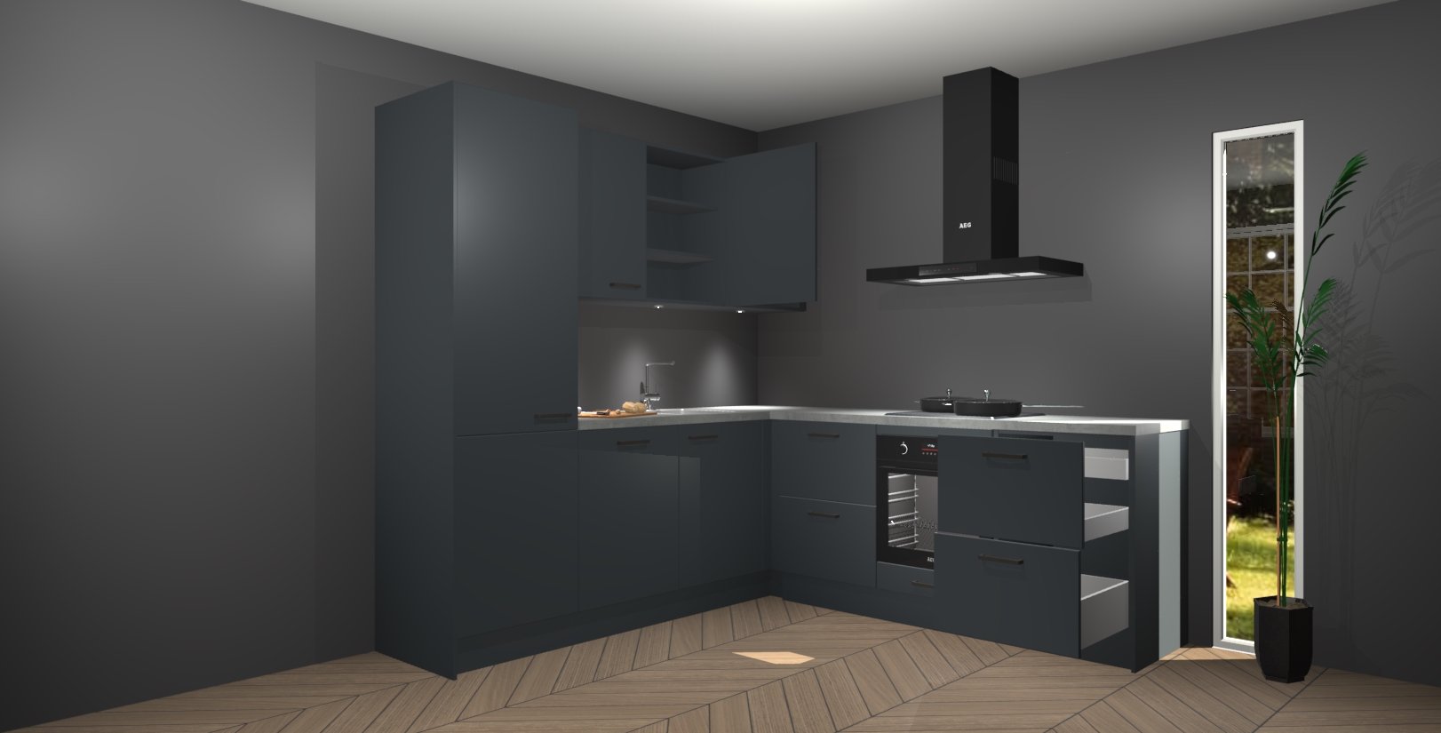 Inclusief plinten, stelpoten en werkblad
