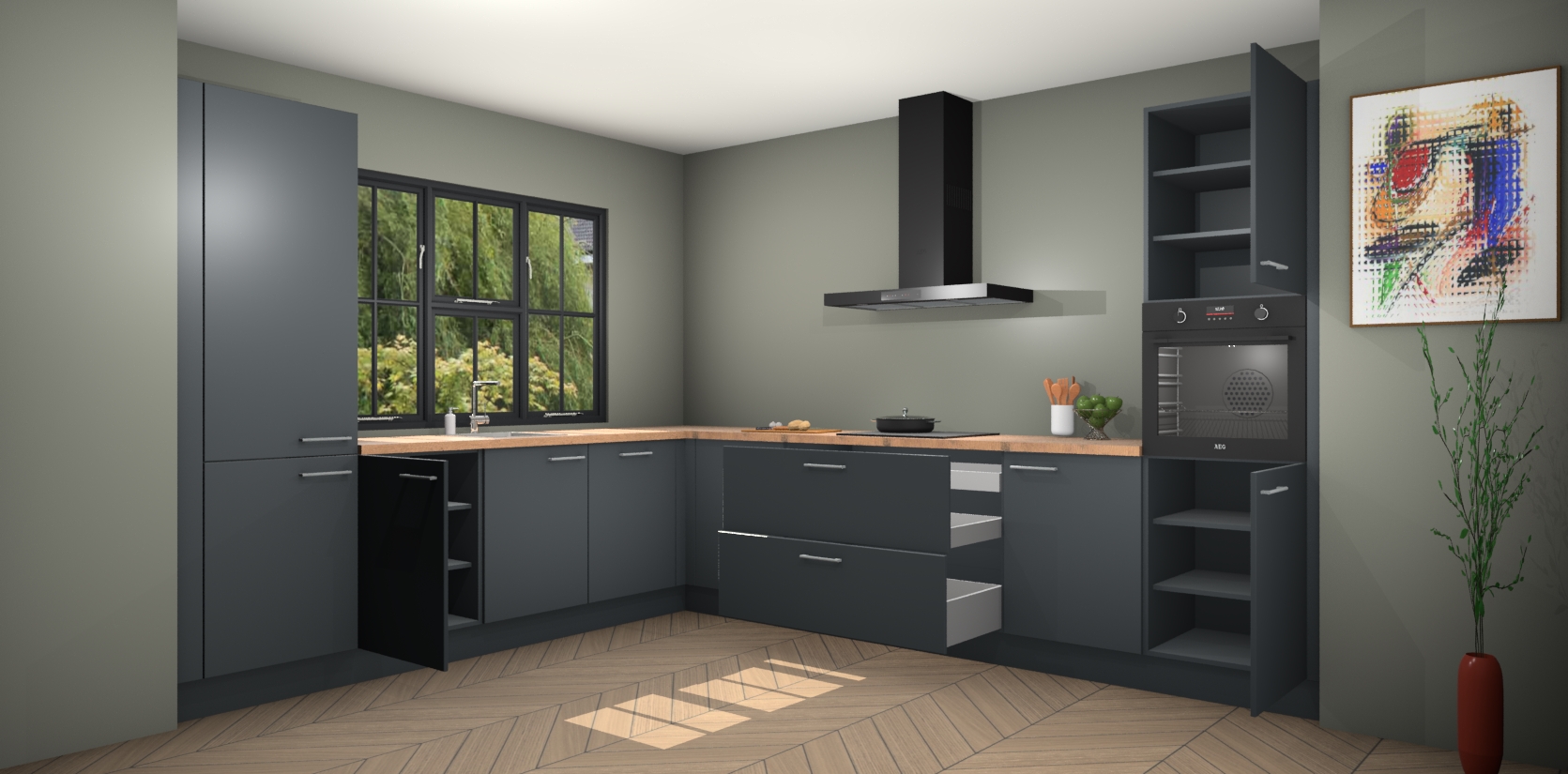 Inclusief plinten, stelpoten en werkblad