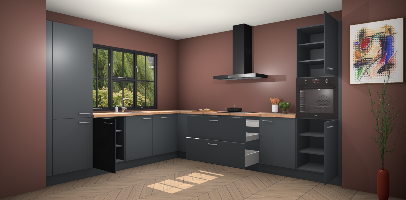 In deze box zijn alle kleuren verzameld van de deuren en werkbladen. Vraag de gratis kleurenbox aan en kijk thuis rustig verder!