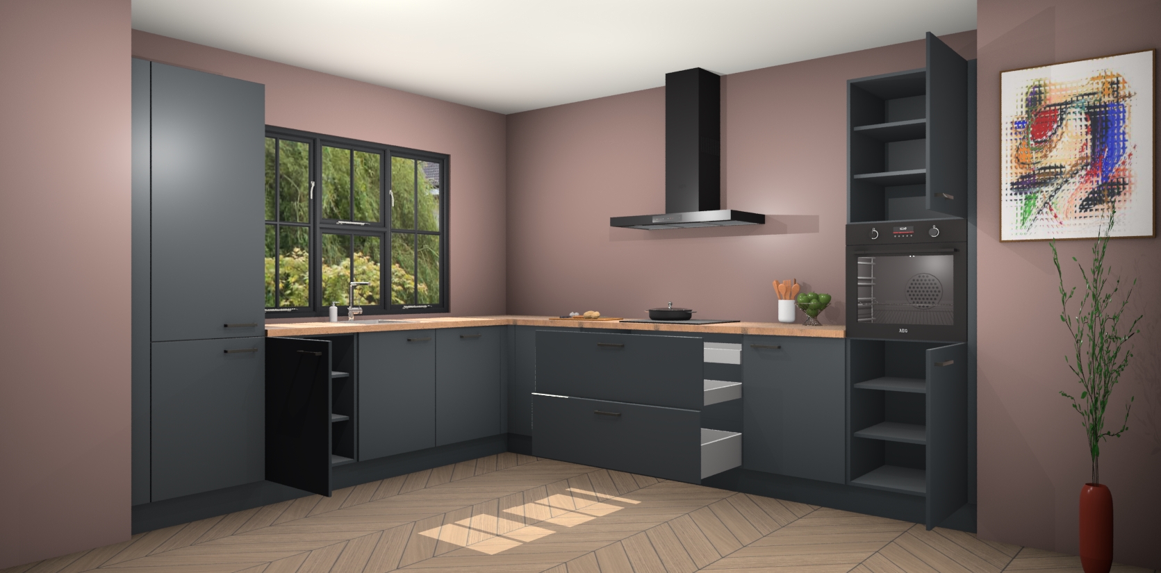 In deze box zijn alle kleuren verzameld van de deuren en werkbladen. Vraag de gratis kleurenbox aan en kijk thuis rustig verder!