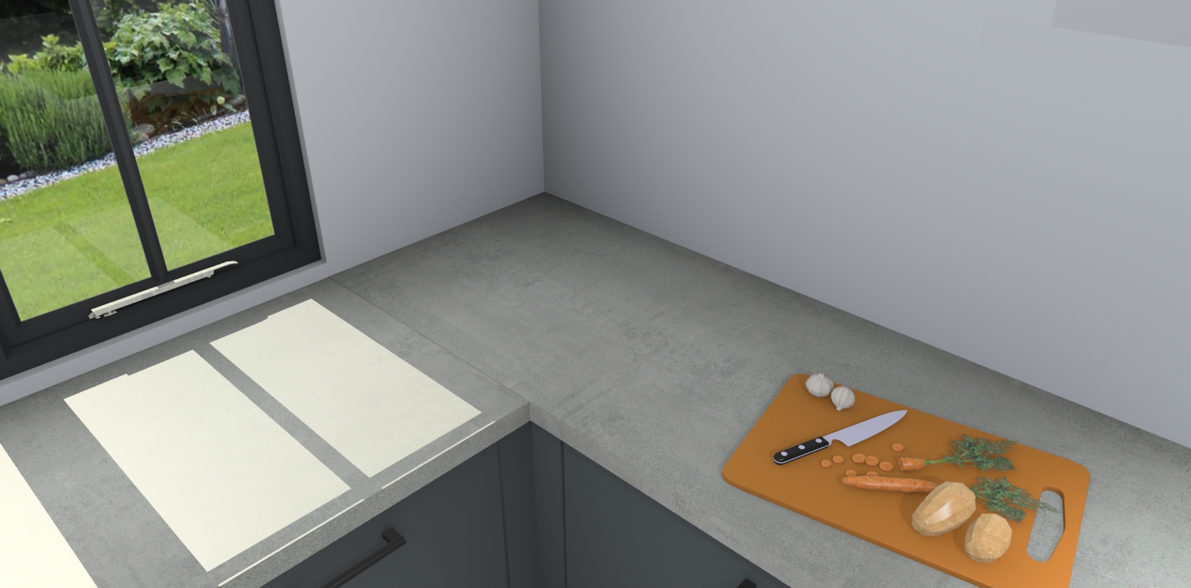 - Bij een hoekwerkblad zijn de hoeken in gevreesd en op maat gemaakt