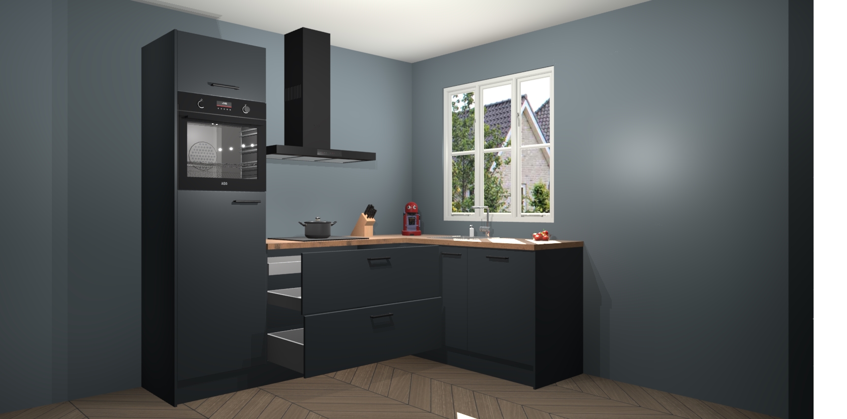 Dit model biedt u voldoende opbergruimte en vijf ingebouwde apparaten: een oven, inductiekookplaat, afzuigkap, vaatwasser en koelkast. Deze apparaten kunnen gemakkelijk worden geüpgrade naar AEG nadat u besteld heeft. De verschillende laden en kastjes bevatten softclose-deuren waardoor ze gezellig dichtvallen met een geruststellend helemaal geruisloos geluid. En dat is nog niet alles! We garanderen ook dat de prijs altijd laag blijft - dus haal nu uw Onyxgrijze keuken Victoria terwijl het kan.