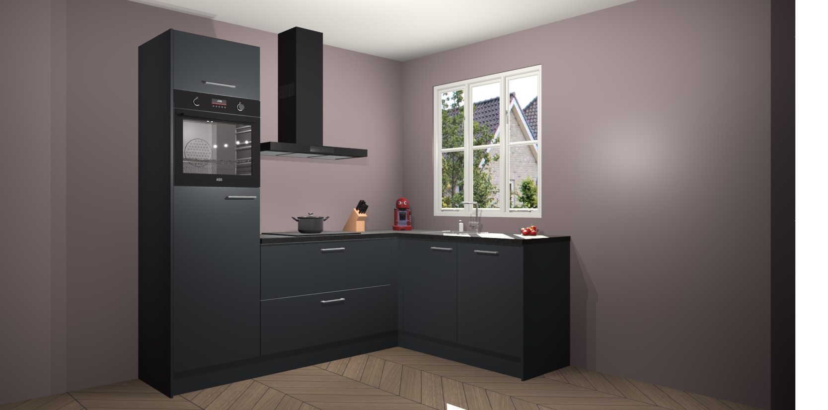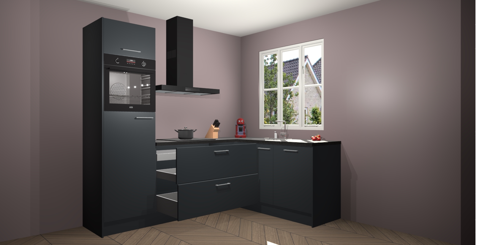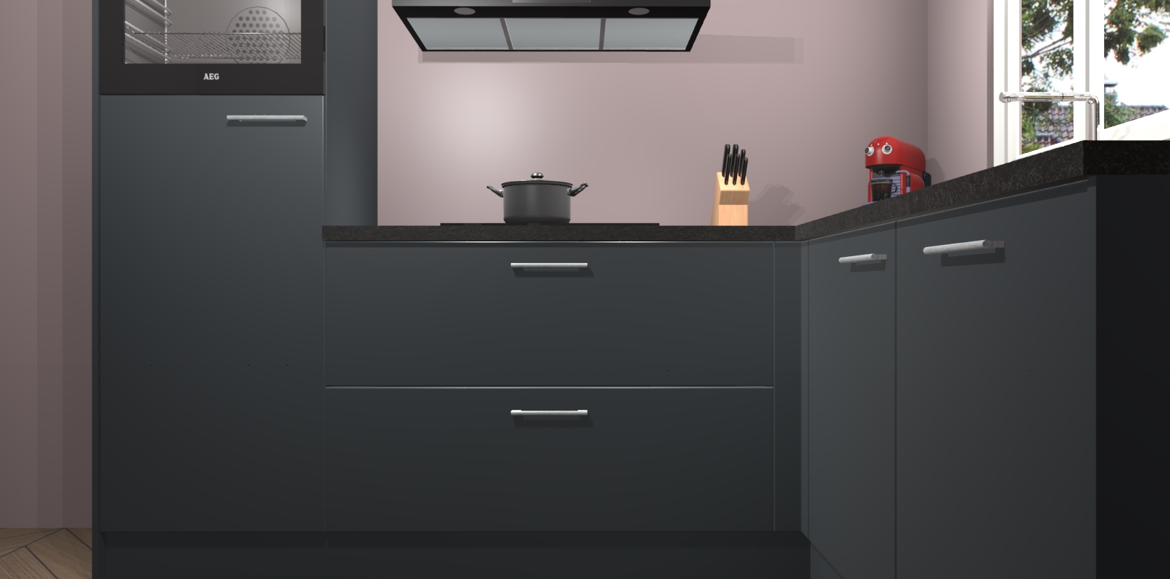 Dit model biedt u voldoende opbergruimte en vijf ingebouwde apparaten: een oven, inductiekookplaat, afzuigkap, vaatwasser en koelkast. Deze apparaten kunnen gemakkelijk worden geüpgrade naar AEG nadat u besteld heeft. De verschillende laden en kastjes bevatten softclose-deuren waardoor ze gezellig dichtvallen met een geruststellend helemaal geruisloos geluid. En dat is nog niet alles! We garanderen ook dat de prijs altijd laag blijft - dus haal nu uw Onyxgrijze keuken Victoria terwijl het kan.